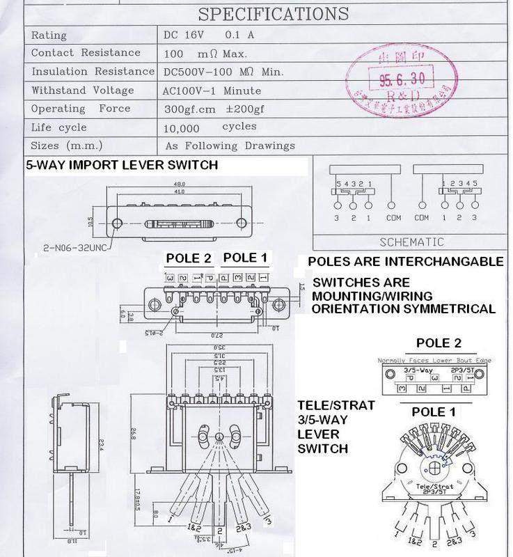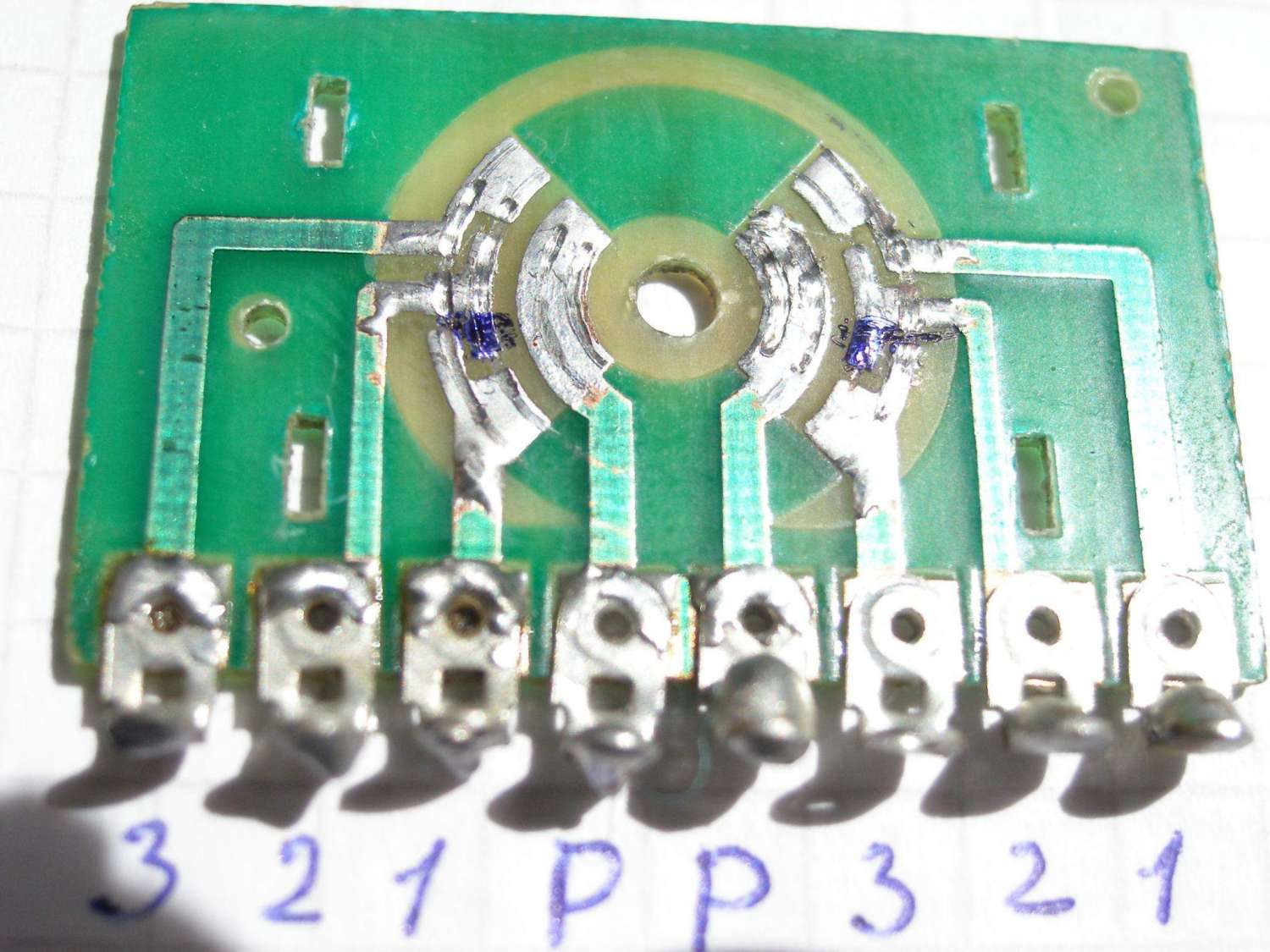 Сами отсечки как таковые сделать оказалось очень легко: сигнальный бриджа - контакт 1, соединение катушек бриджа - контакт 2, это для первой группы контактов. Сигнальный нека - контакт 3, соединение катушек нека контакт 2, это для второй группы контактов. Центральные два контакта Р замыкаются между собой и с них сигнал идет на выход. НО: проблема в том, что при таком раскладе работать будет так: 1) бридж, 2) отсечка бриджа + отсечка нека, 3) отсечка бриджа + отсечка нека, 4) отсечка бриджа + отсечка нека, 5) нек. Происходит это из-за того, что в положении 2 для бриджа одновременно замыкается вторая группа контактов, а так как выход у них общий то и отсечка со второй группы так же прет на выход. Соответственно, нужно отрезать дорожку так, что бы в положении 2 во второй группе контактов сигнал обрывался, и в положении 4, но только уже в первой группе. В двух местах симметрично разрезать нужно короче. У меня есть сломанный аналогичный переключатель, щас чудок попозже выложу фотку, думаю так нагляднее будет.