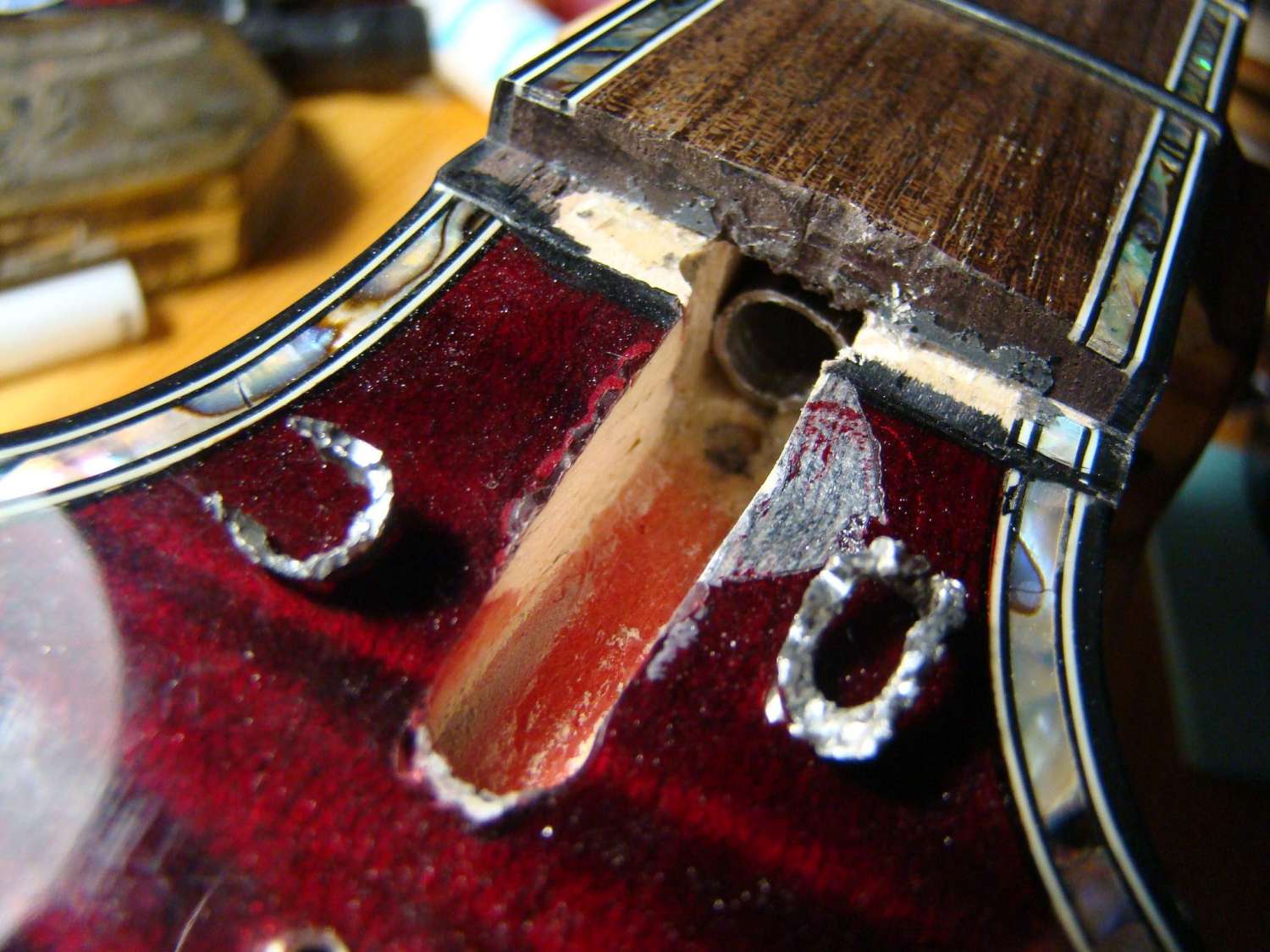 принесли гитарёшку на ремонт. обычный в общем то , рядовой случай. не часто, но раз в год что нибудь подобное попадается. проблема называется дефлорация анкера. владелец утверждает что давал крутить какому то специалисту, но кому - не сознаётся. а городишко у нас маленький, все ремонтники друг друга в лицо знают. хотя не исключено, что владелец оставил право первой ночи за собой, только почему то стесняется в этом признаться.