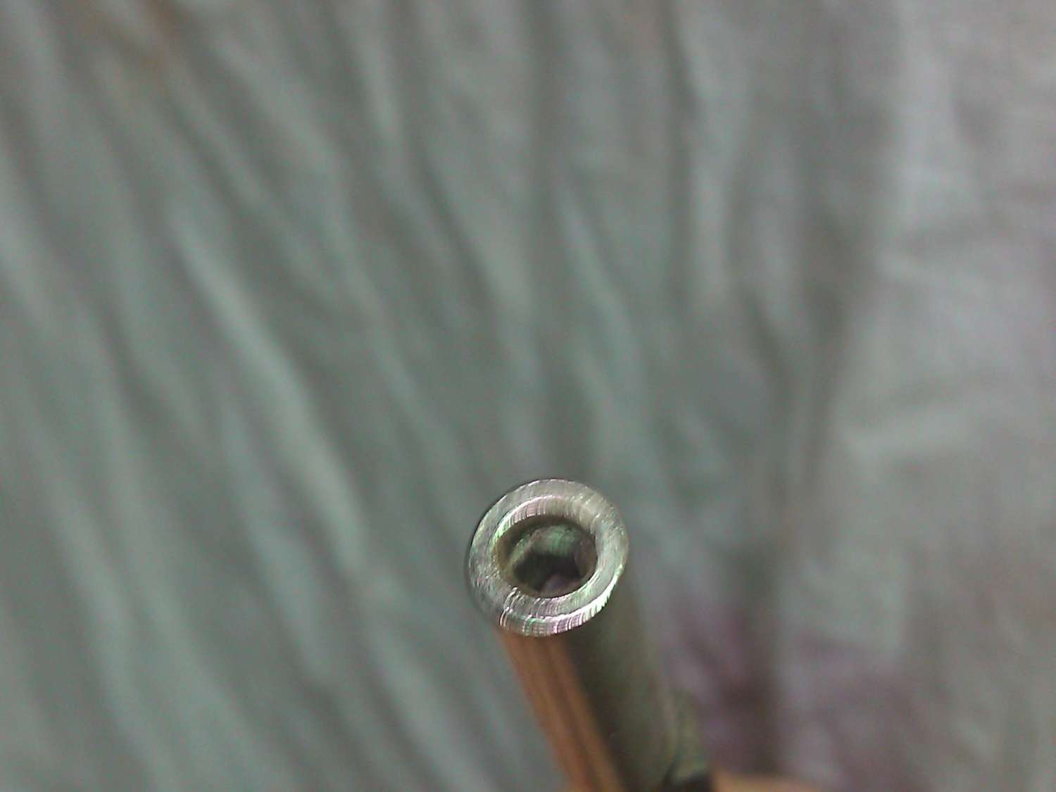 тонким сверлом сверляю в гильзе множество дырок под разными углами, потом подрубаю маленьким зубильцем, потом подзачищаю всё бормашинкой. и бормашинкой же в пуле прорезаю 2 шлица, пусть корявые, но вполне позволяющие отвёрткой эту пулю свободно выкрутить. теперь лохматые края гильзы дозачищаю бором и ура! резьба на штыре естественно живая, поэтому всё что мне нужно - выточить худенькую пулю с шестигранником, чтобы она свободно в гильзу входила. тут можно просто проточить обычную покупную пулю или полностью изготовить новую. я покупными пулями не пользуюсь - всегда сам точу на станке. долго, но красиво и шестигранник у меня получается толстый на 5 мм.