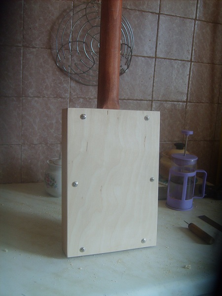 ... и добавил:Что-то я забросил свою резонаторную мандалайку. То есть не забросил совсем, но процесс замедлился. Теперь решил пустить в дело не воск для покрытия, а масло, а это долгоиграющая история. Только и делаю каждый день что драю поверхность скотч-брайтом, наношу очередной слой и снова складываю на полку.