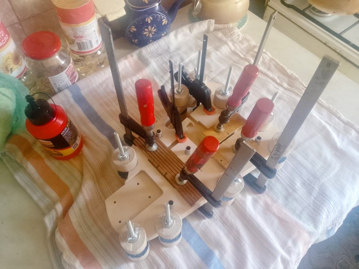Интересно, есть какой-нибудь столярный клей на основе ПВА, у которого время схватывания хотя бы 30 минут? А то следующая гитара побольше будет, пока на всю поверхность клей нанесёшь, там, откуда начал, он уже схватится.