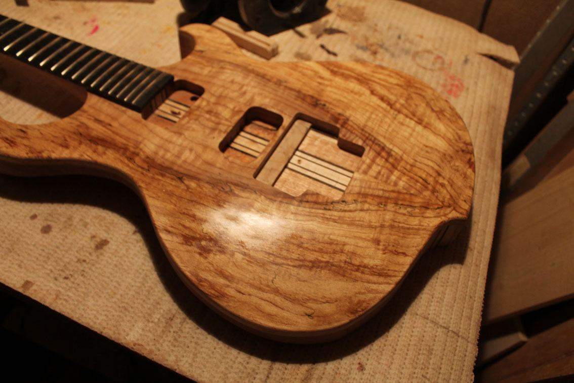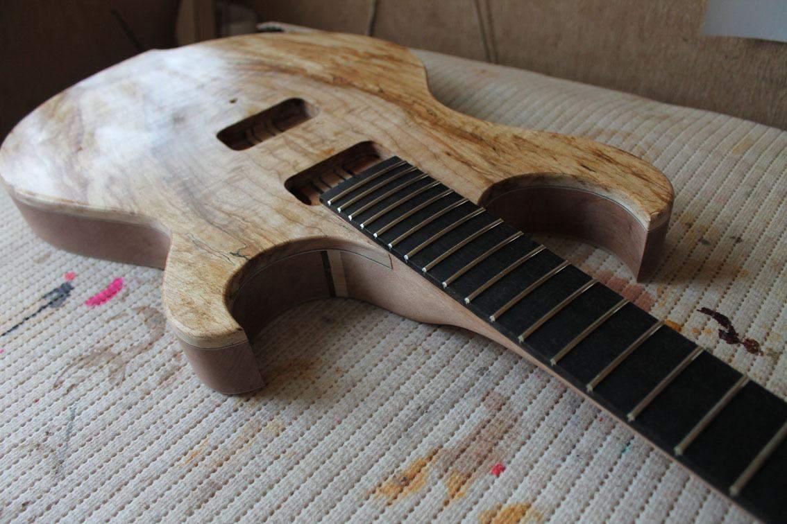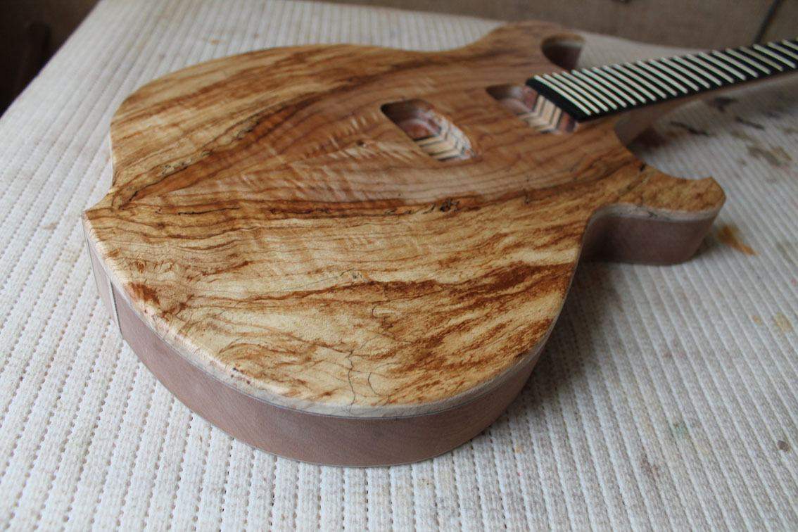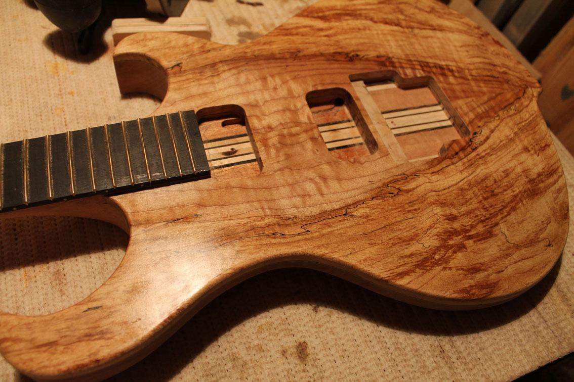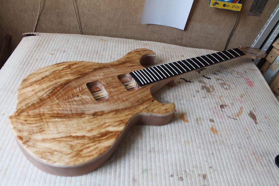 Не слишком ли много переклея.Все таки это прежде всего музыкальный инструмент.Даже на грифе (для стабильности и прочности)беребор не всегда оправдан.А на корпусе и подавно.Красота и оригинальность-явно в ущерб музакальной составляющей (читай основное).Клей в таком количестве-не лучший вариант, все таки он больше работает как демпфер между слоями.