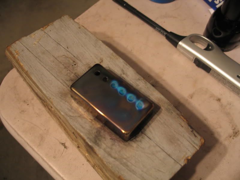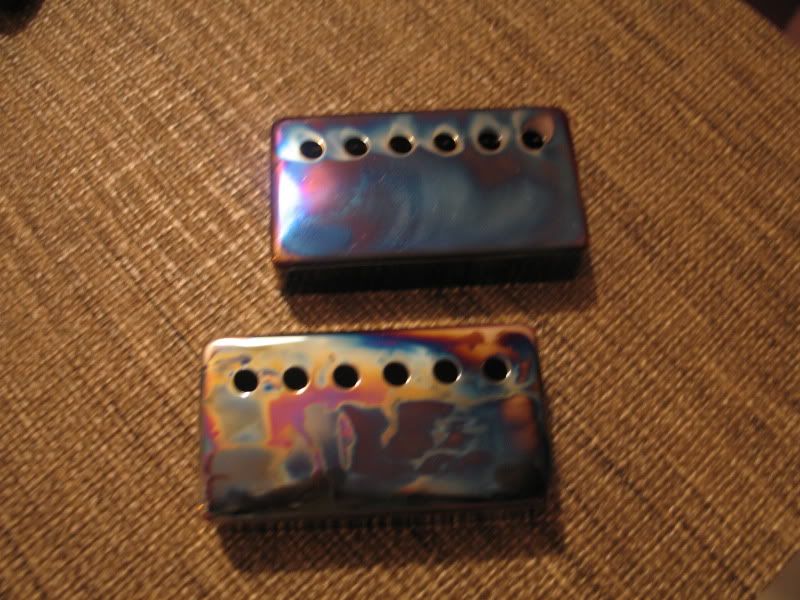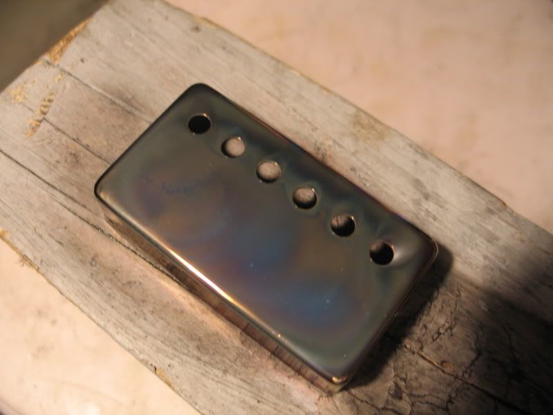 Had a pair of chrome covered pickups out of my Agile laying around so I thought I would play around a bit. Pretty much came out like crap. Definately harder than it seems. The one with less coloration was done from the outside and the other from the inside. What do you guys think?