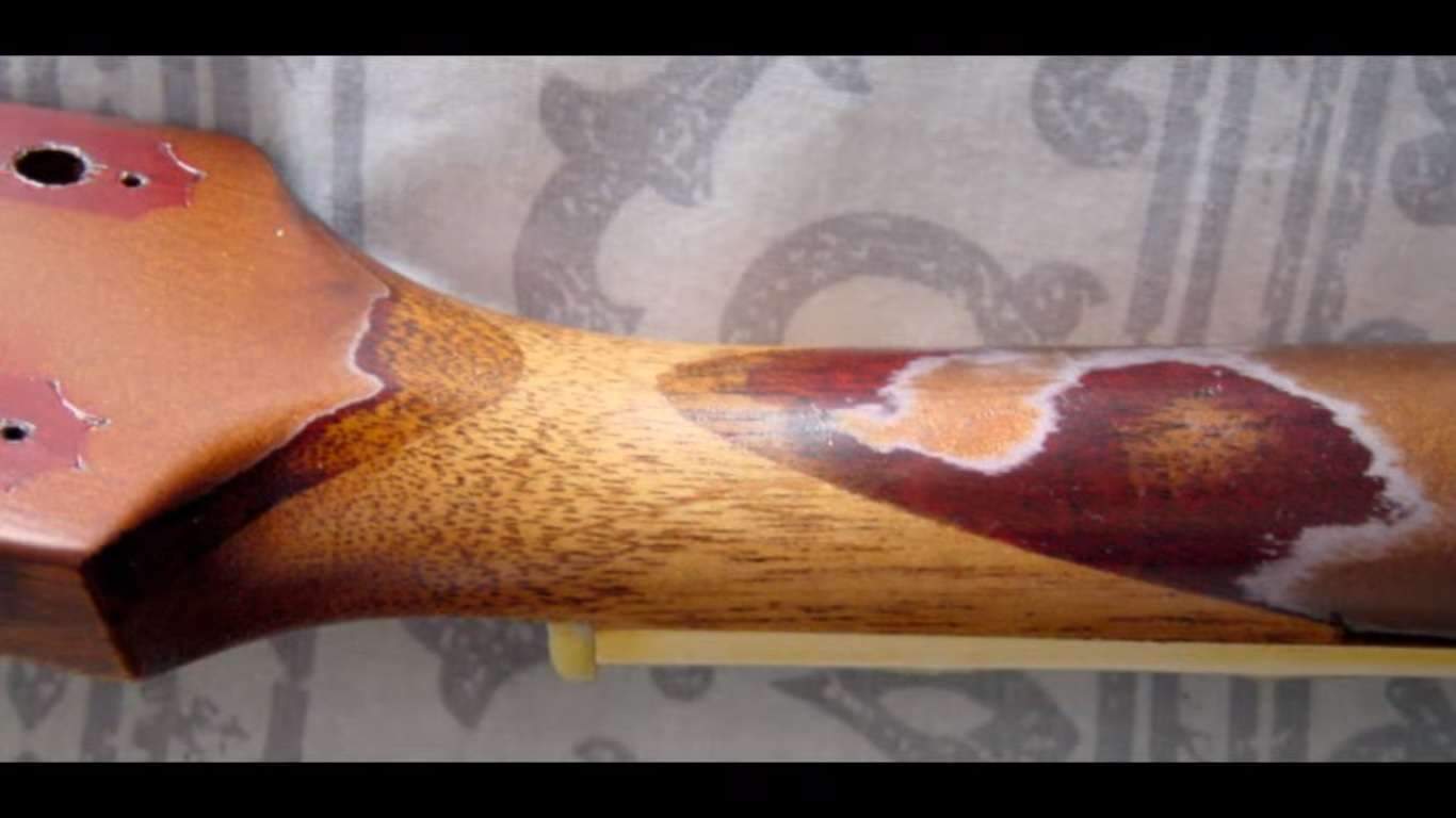 https://www.youtube.com/watch?v=FK6anoZ024gНо тут вопрос, делать башку: из одного куска, или же сначала наращивать гриф а потом клеить голову, как это и было в оригинале? Второй вариант мне нравится больше ибо надо меньше материала и он прочнее. Но он зело геморнее...