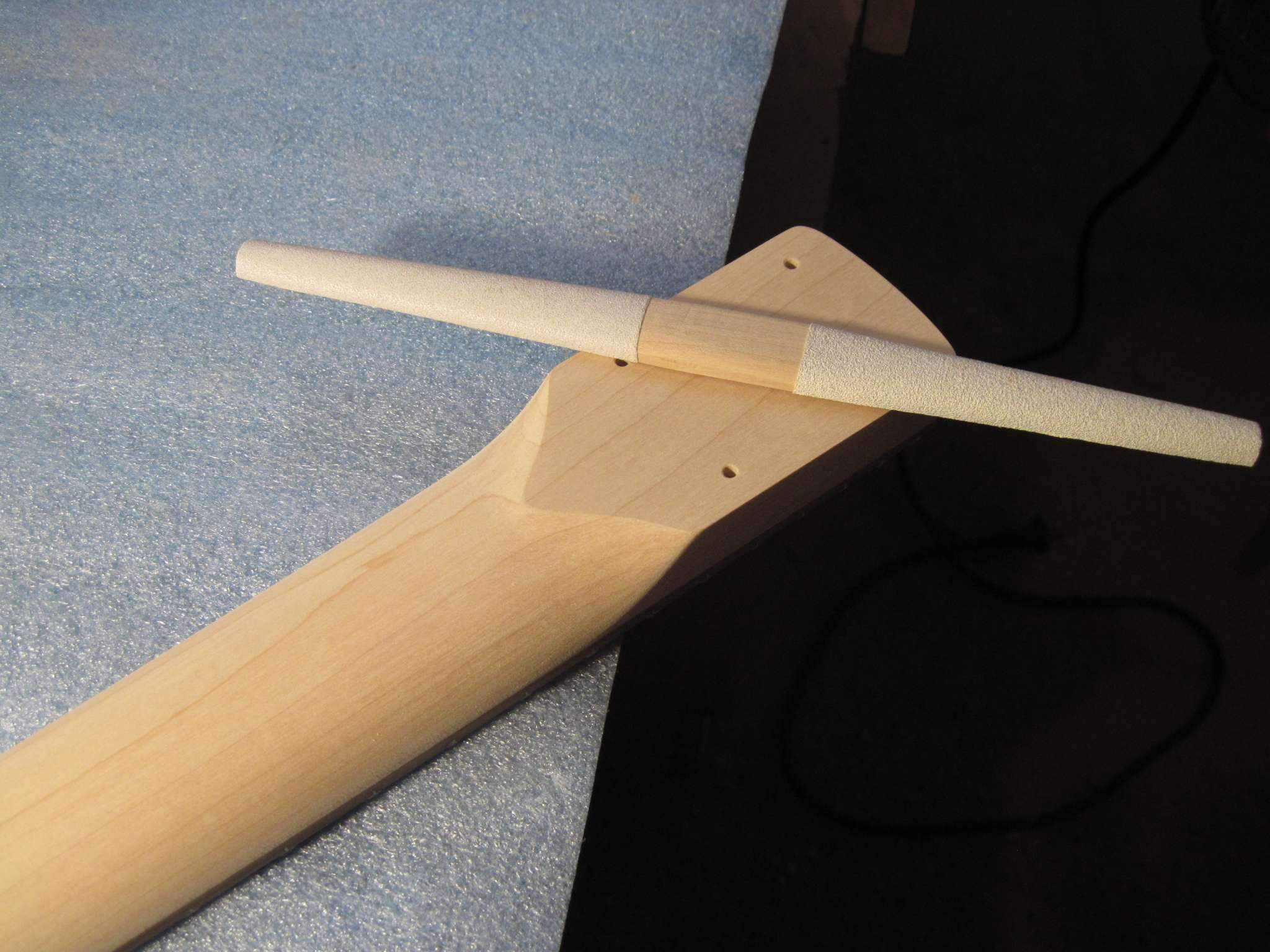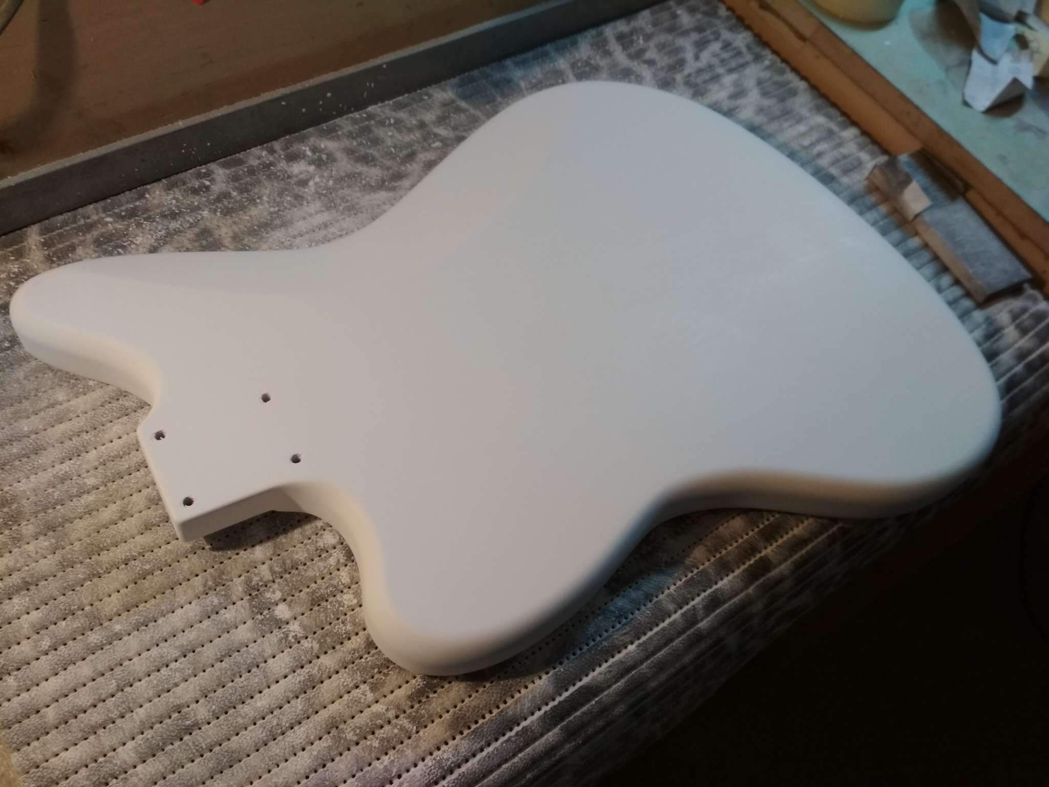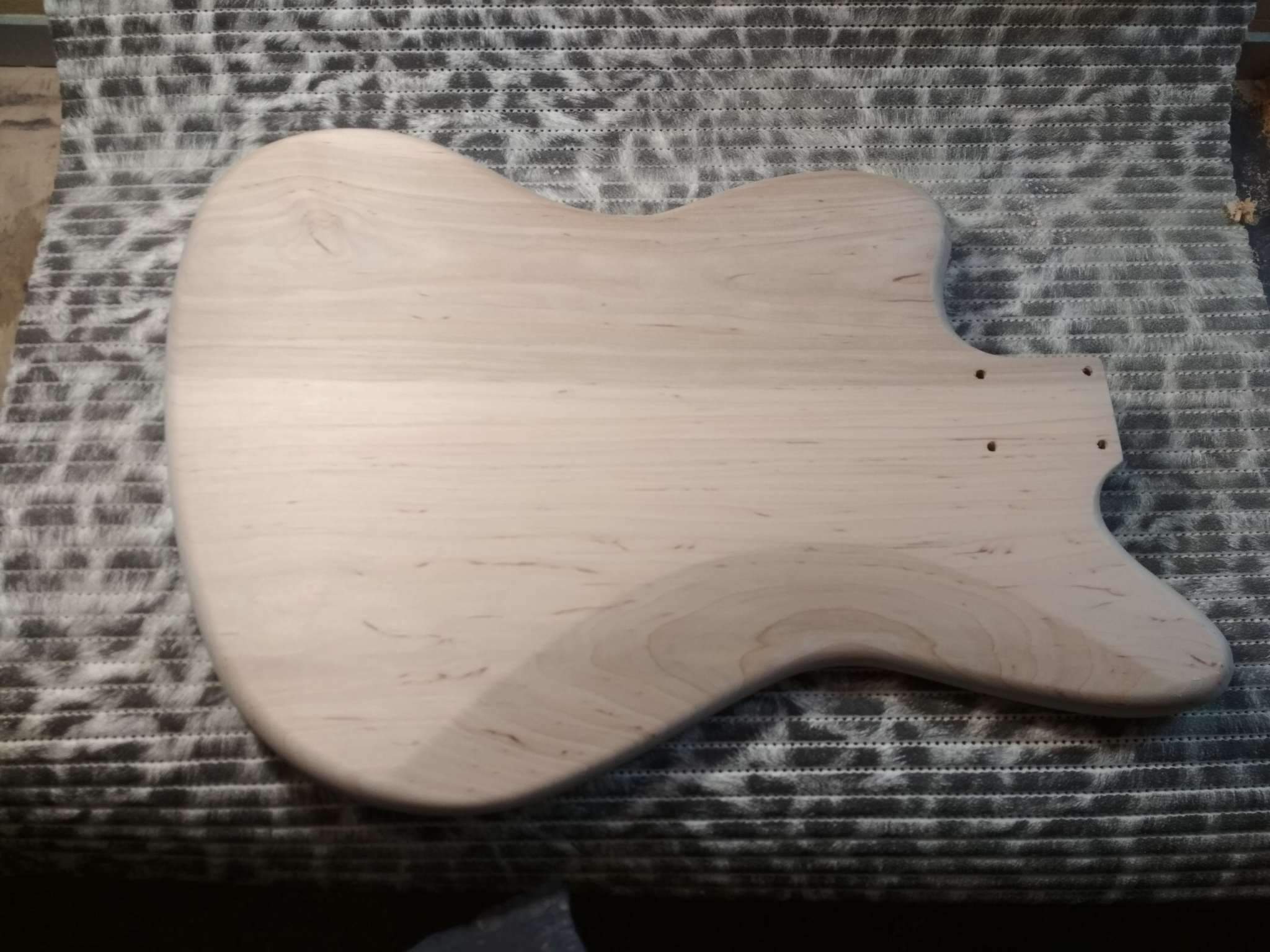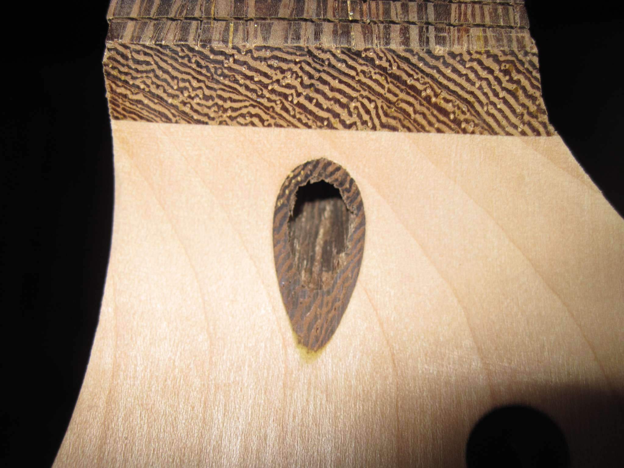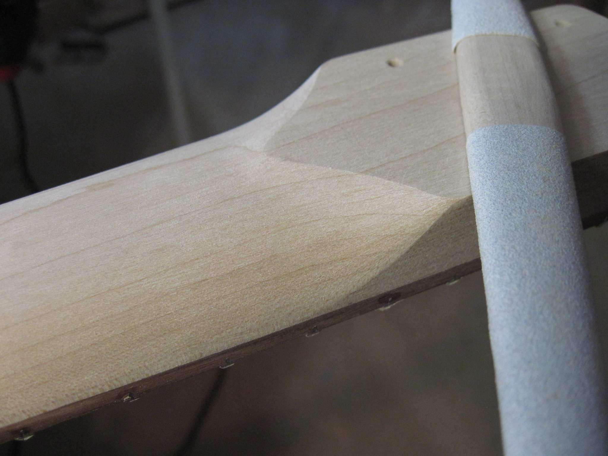 Schmeller, Я еще и маслом покрыл, но не лимонным как обычно все делают, а типа датским, тонким слоем. Когда оно высохло я растер его фетром, после этого она стала немного матовой на вид но приятной, гладкой на ощупь. Сделал так чтобы закрыть слегка им поры в палисандре и чуть цвет его чтоб изменился. Сейчас накладку я заклеил малярной лентой, чтобы на нее пыль не лезла. Когда гриф полностью будет завершен располирую накладку тем же фетром.