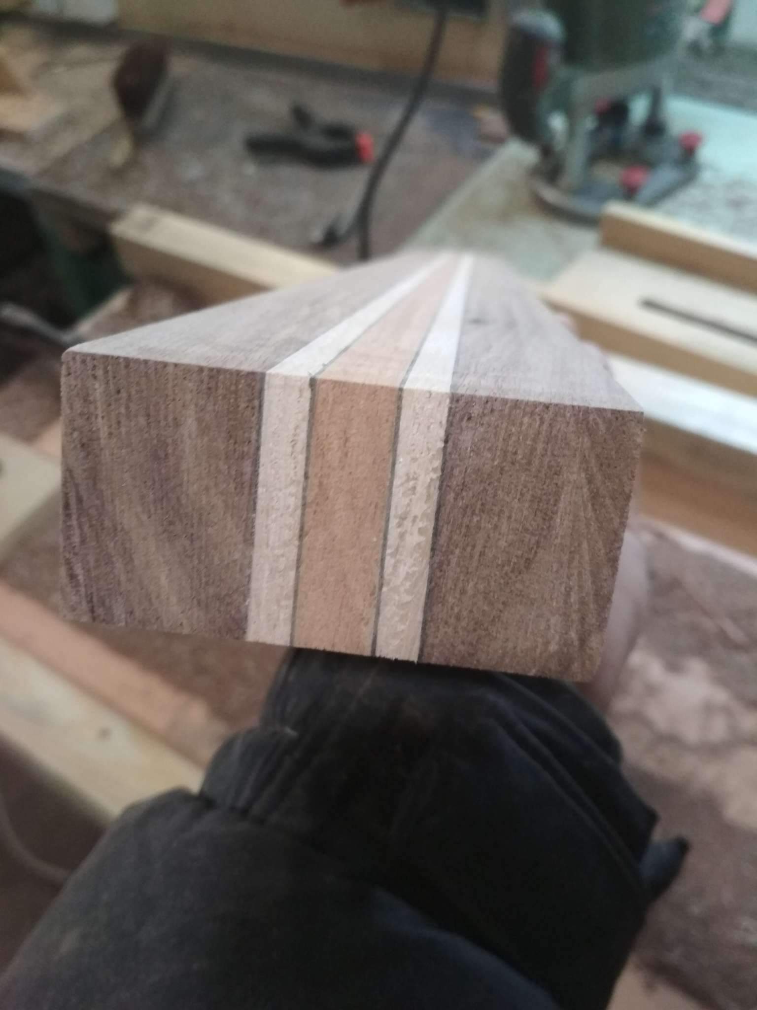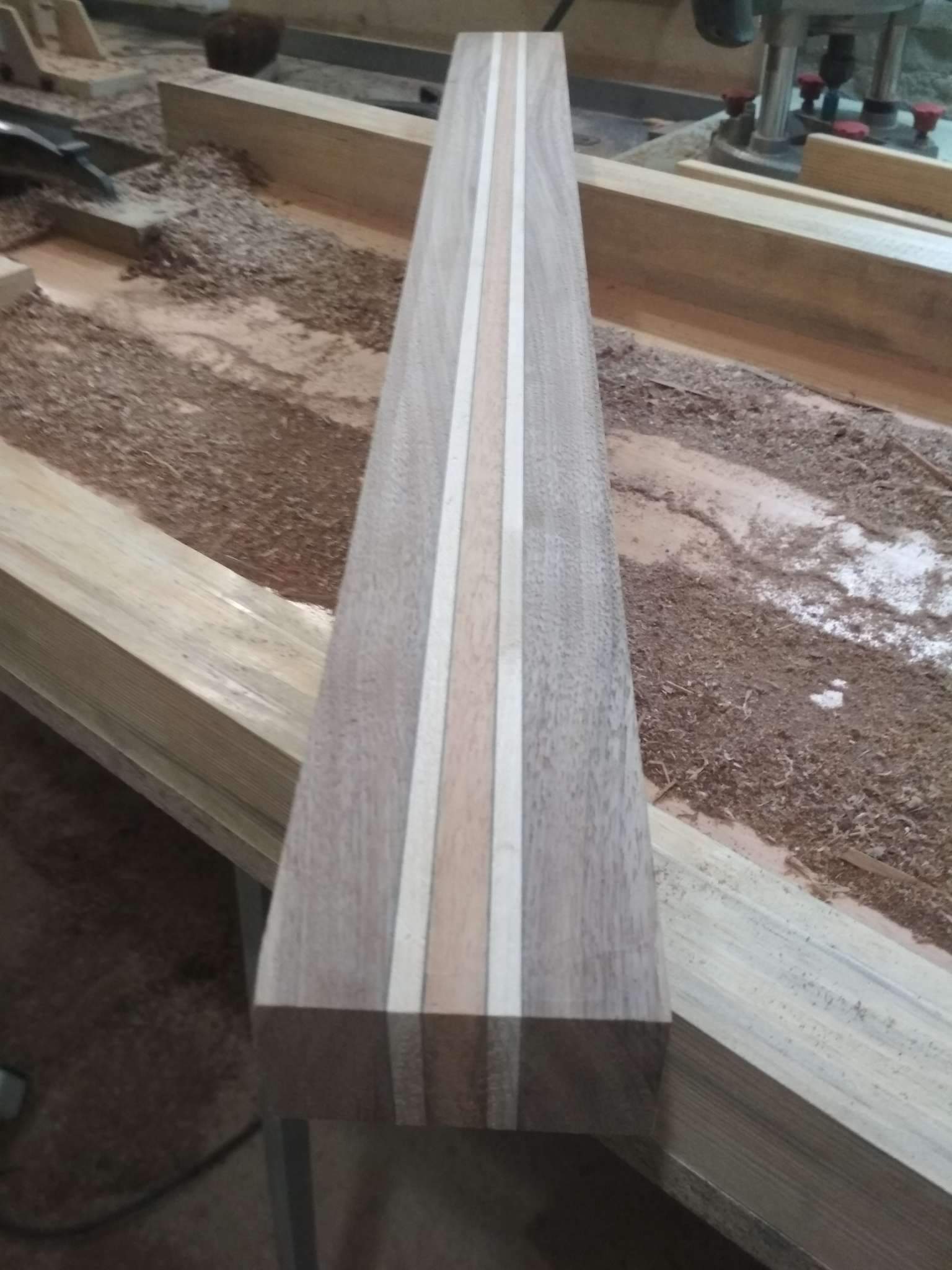 Проект выходного дня) В результате небольшой ревизии дома под кроватью - напилил вот такой набор. Подготовим его и склеим. В наборе будет клён, орех, шпон клёна тонированный и что-то красное (названия не знаю) по твердости как орех, но структура плотнее. На накладку пойдёт вот эта дощечка, твердая, напоминает венге своим рисунком. Может кто-то подскажет, что это за деревяхи могут быть.
