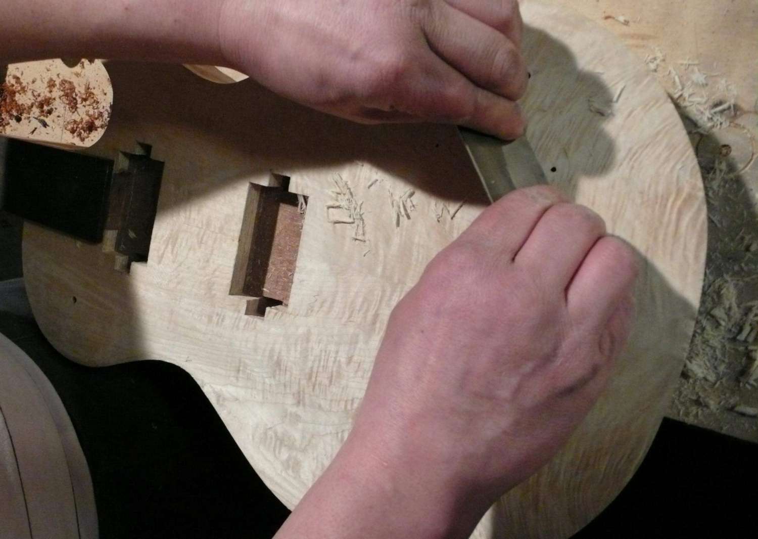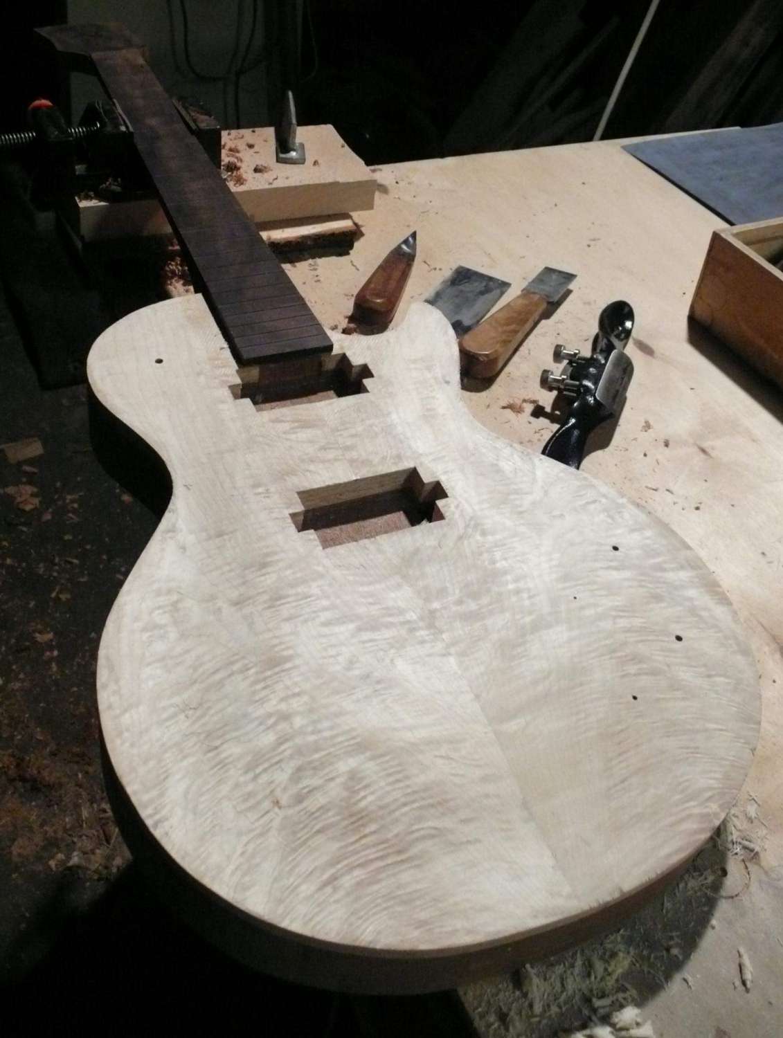 Господа, нужен совет. Запланировал на лето-осень очень кашерный PRS ручной работы, с топом определился -твердый волнистый клен, 5-7-ми летней выдержки, из последних артефактов, низ махагон 40-летней выдержки, подарок дедушки -слесаря (дай Бог здоровья), который в молодости запас на мебельной фабрике (вторая часть драгоценной доски ушла в соседнюю ветку), есть еще пара заготовок для грифов, такого же махогона, при обработке, столо понятно, что доска очень твердая и тяжелая. Так вот вопрос: не скажется ли негативно на звук такое сочетание тяжелго клена и тяжелого махагона, и какое лучше дерево для грифа в таком сочетании: клен, твердый махагон или средней плотности кая?