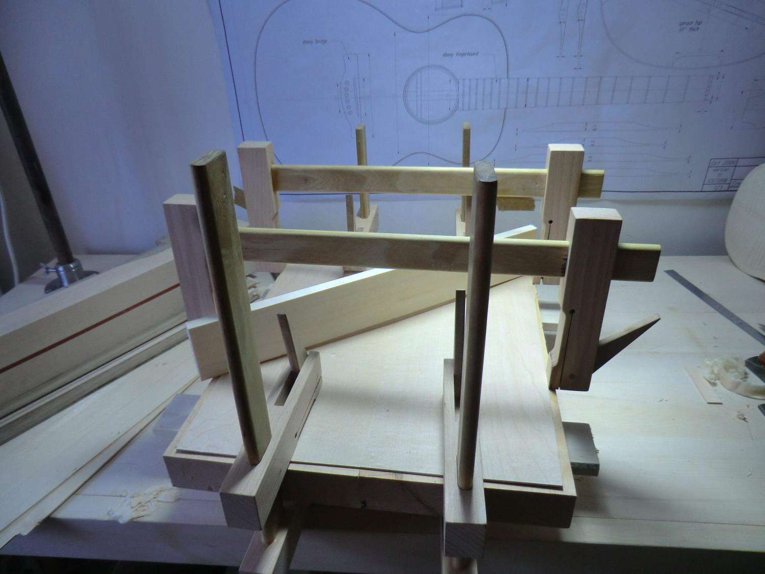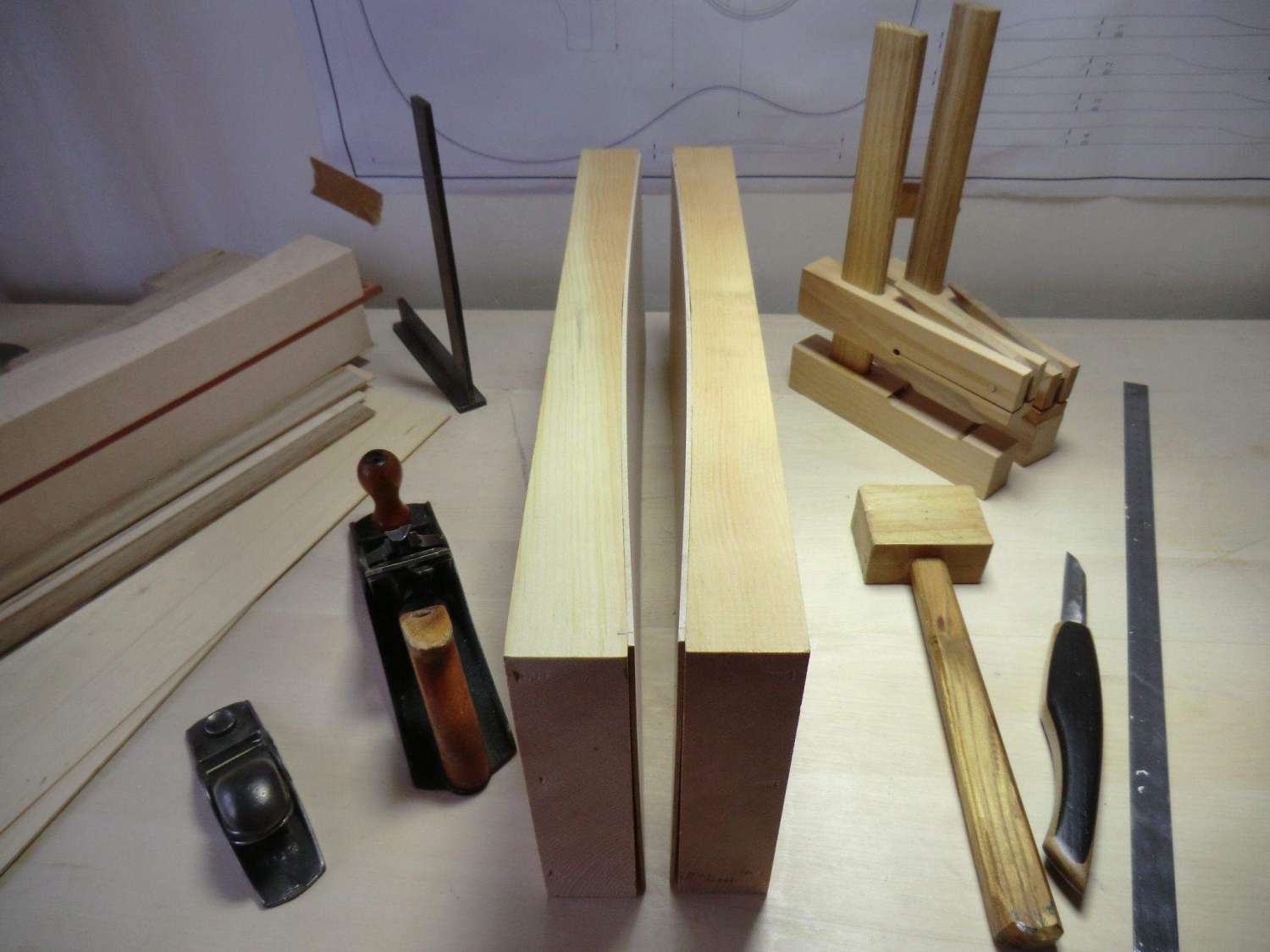 Для формирования свода нижней деки использую шаблон - чаша из двух половин, на нем прифуговываю, наикошернейший осетровый клей в пузырях и самодельная клееварка из банки из-под краски, кипятильника и стеклянной баночки.