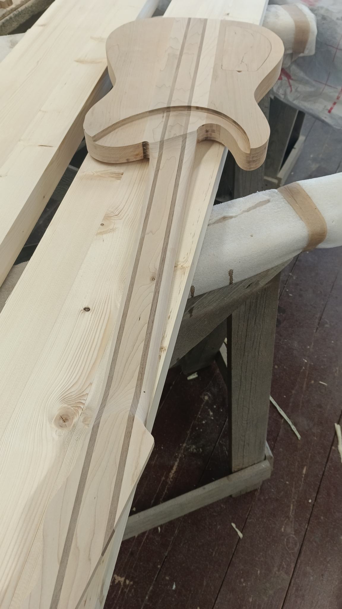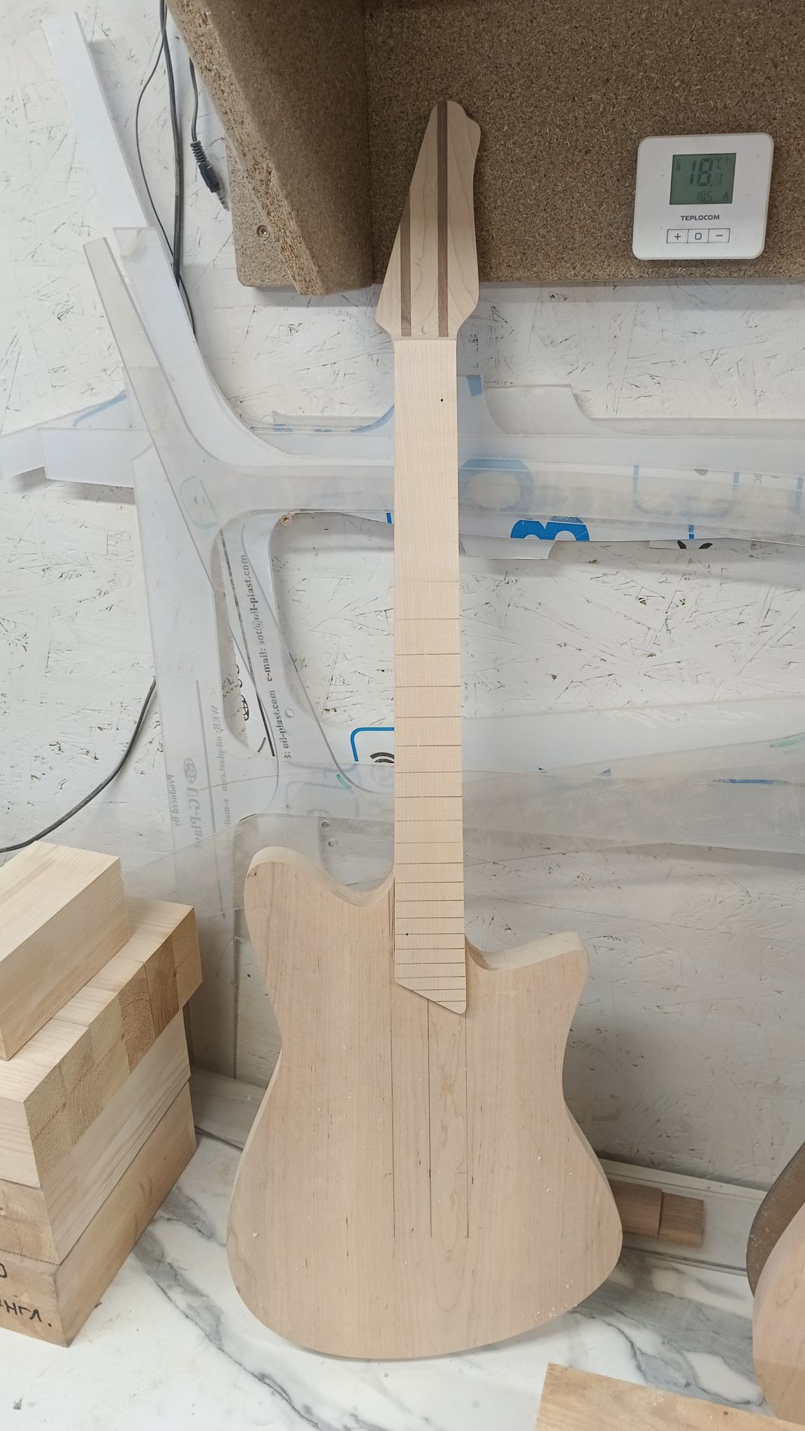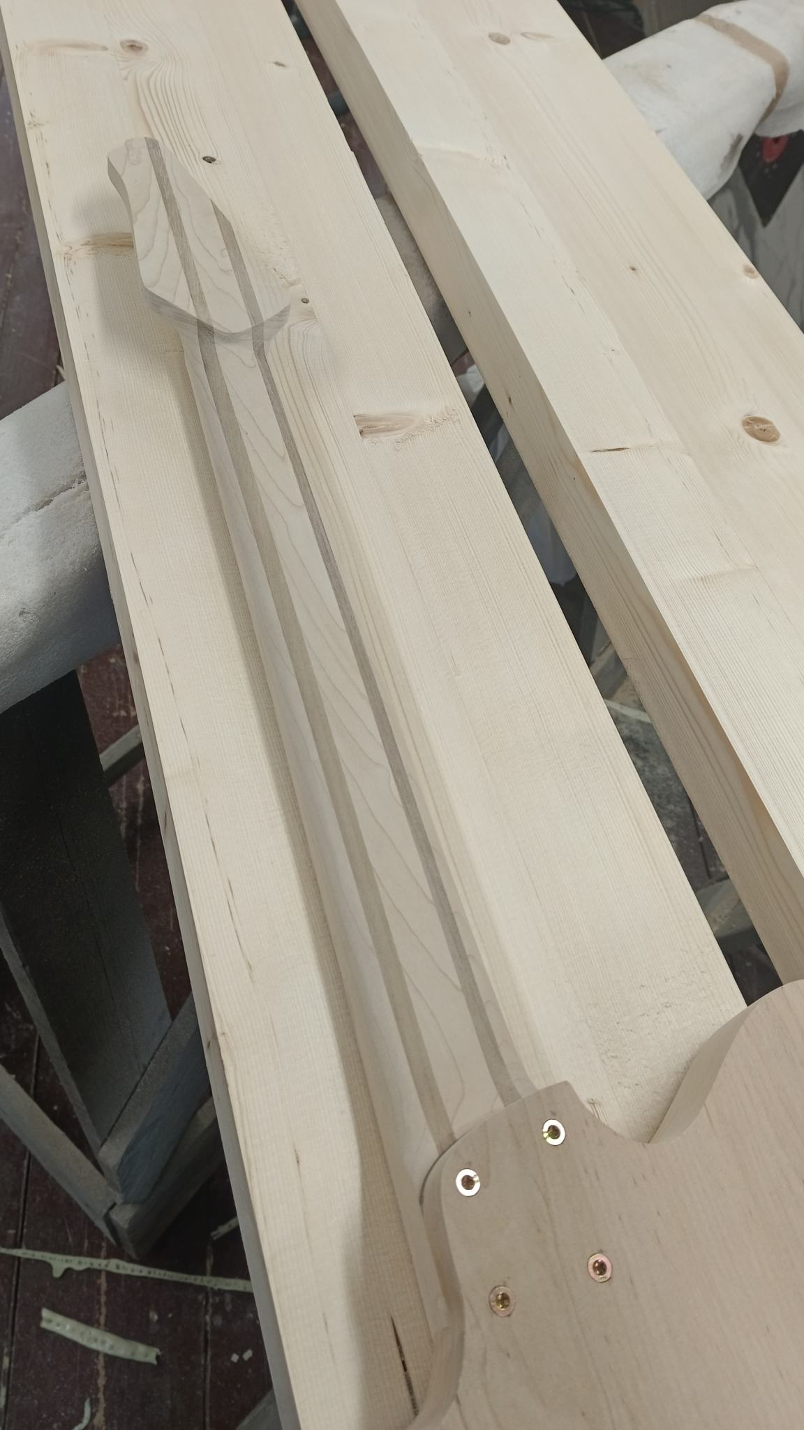 По грифу меня так же терзают ощущения, осей нарисовал, правило ставил, линейки прикладывал, блин, ровно, центральная ось деки смещена к низу, она очень сильно мозгу мешает))), тонировка ольхи пока не в приоритете, думаю глухая покраска металликом фиолетовым))).