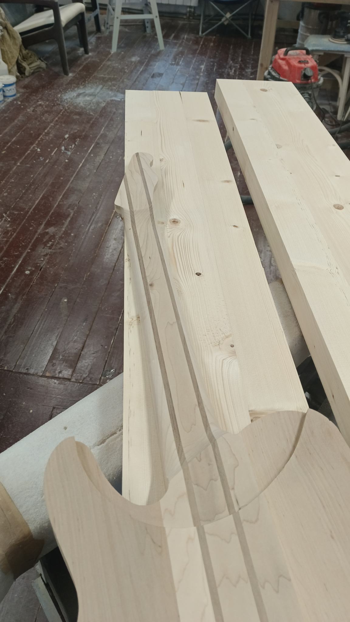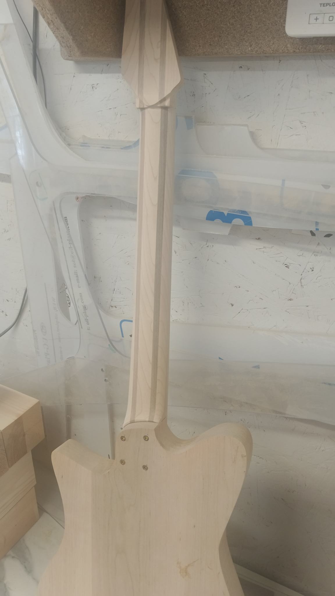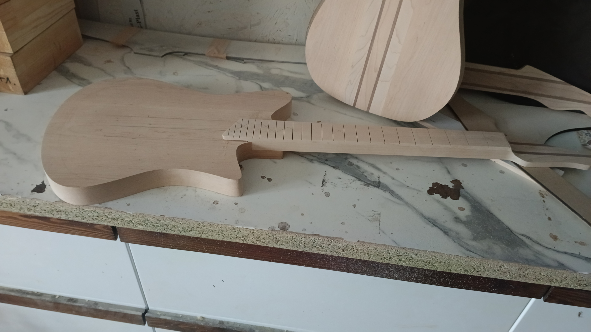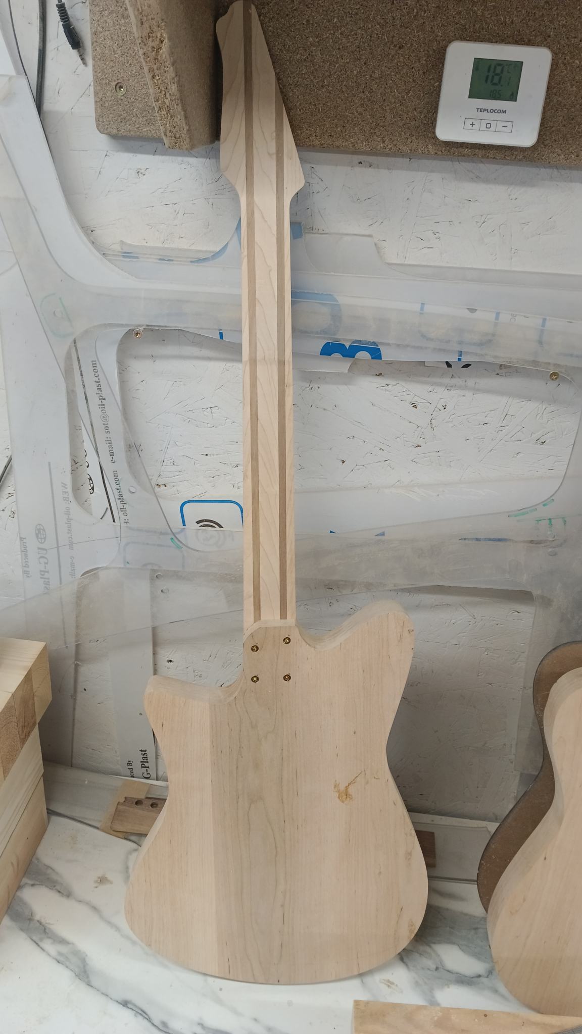 По грифу меня так же терзают ощущения, осей нарисовал, правило ставил, линейки прикладывал, блин, ровно, центральная ось деки смещена к низу, она очень сильно мозгу мешает))), тонировка ольхи пока не в приоритете, думаю глухая покраска металликом фиолетовым))).