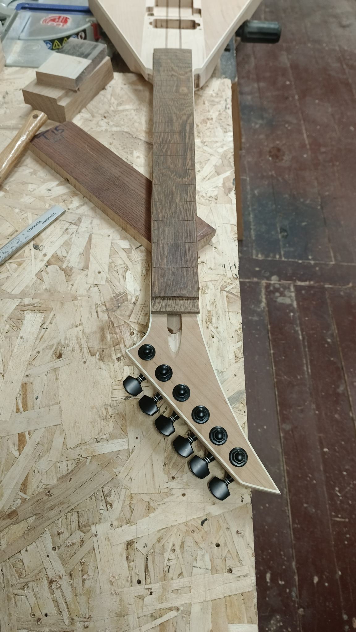Форумчане, нужна помощь, с эбеном не работал, как дальше обрабатывать накладку? с какого грита начинать, накладка после ЧПУ? чем шлифовать профиль сделан радиус 12/16, так же есть вопрос по ладам, их буду забивать, после хочу проклеить, с торцов супер клей не пролить, пропилы сделаны не до конца, как лучше сделать?