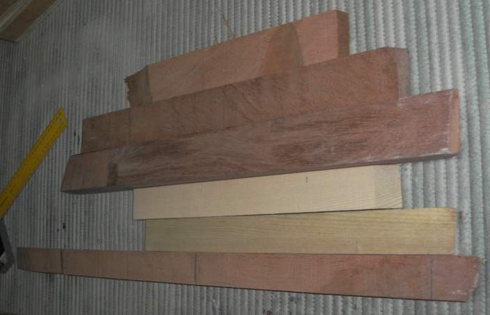 после ревизии нашёл несколько обрезков краснухи и ясеня поразмыслив хватило на три грифа для укулеле