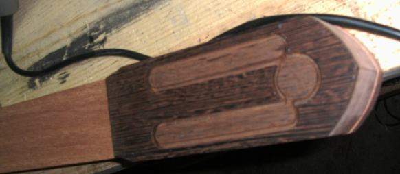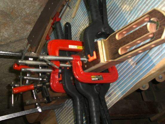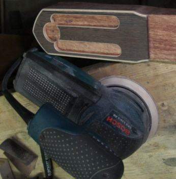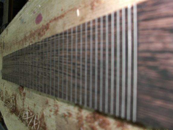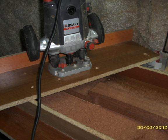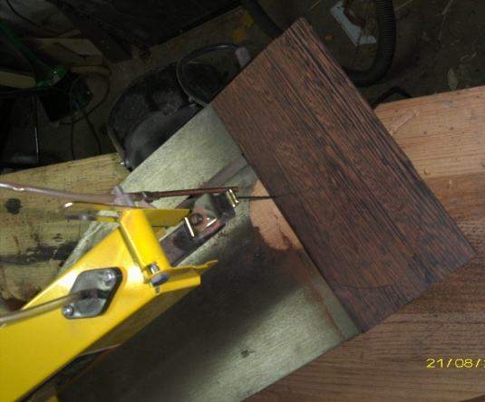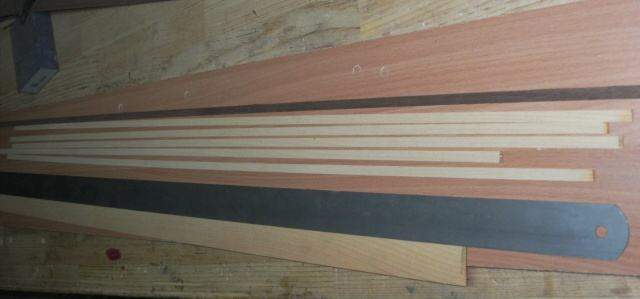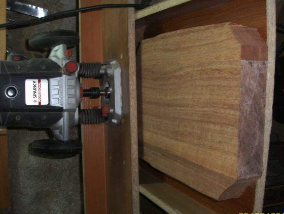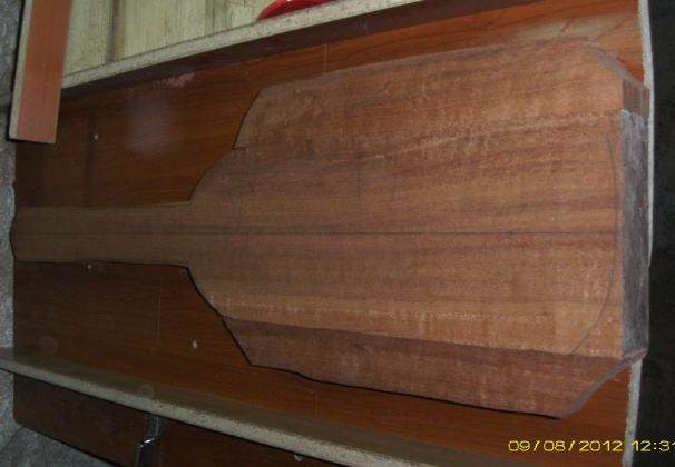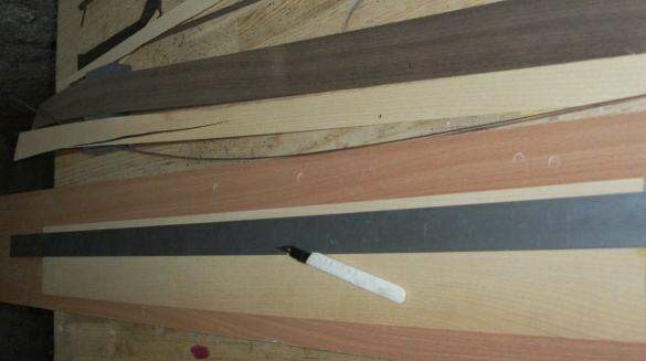 Обрезали, приклеили кант – шпон клён-орех-клён.