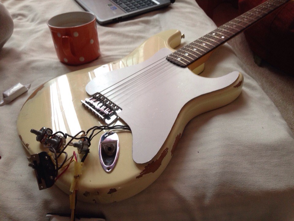 2. выбросил весь старый темброблок, даже свитч поменял (валялся у меня свитч получше, тоже из сквайра, только серии Standard) поты оказывается были вообще неадекватных номиналов, да и вообще спаяно было все на редкость убого... тонкие провода, пайка просто