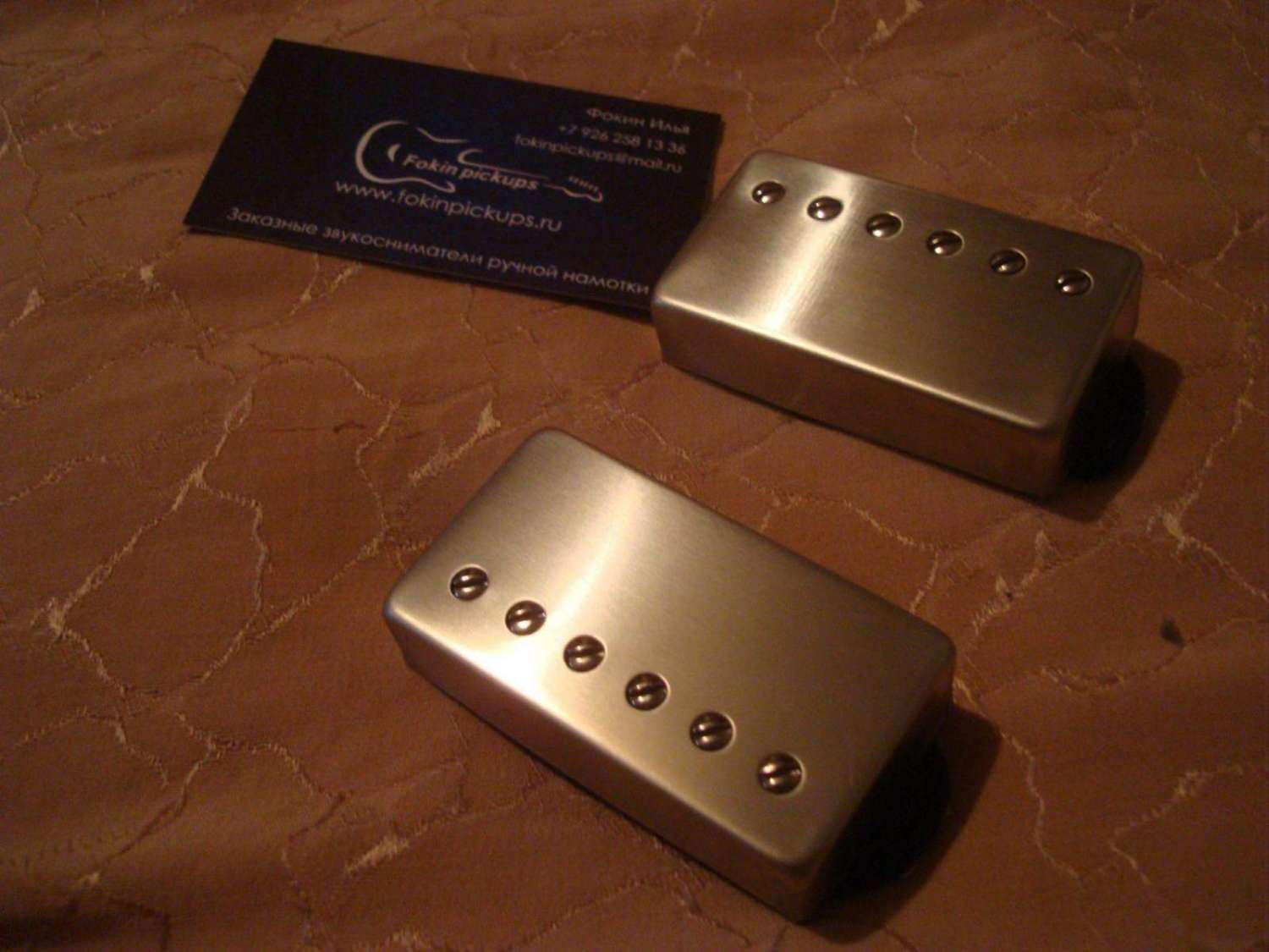 . Выбор пал на "Fokin pickups" - уже знакомые многим посетителям сего форума. За основу были взяты звукосниматели Alnico II Pro Slash APH-2 от Seymour duncan. Однако, как сказал Илья, не являются копией. Кроме того на них установлены крышки из Никель-сильвера… На деле буду смотреть, что получится – вполне возможно, что сниму с бриджевого или может даже с обоих звучков крышки, если вдруг звук окажется не достаточно яркий. Так что теперь жду с нетерпением и долей волнения, когда я наконец завершу проект и все опробую. Хочется верить, что результат не огорчит и оправдает ожидания и положенные усилия