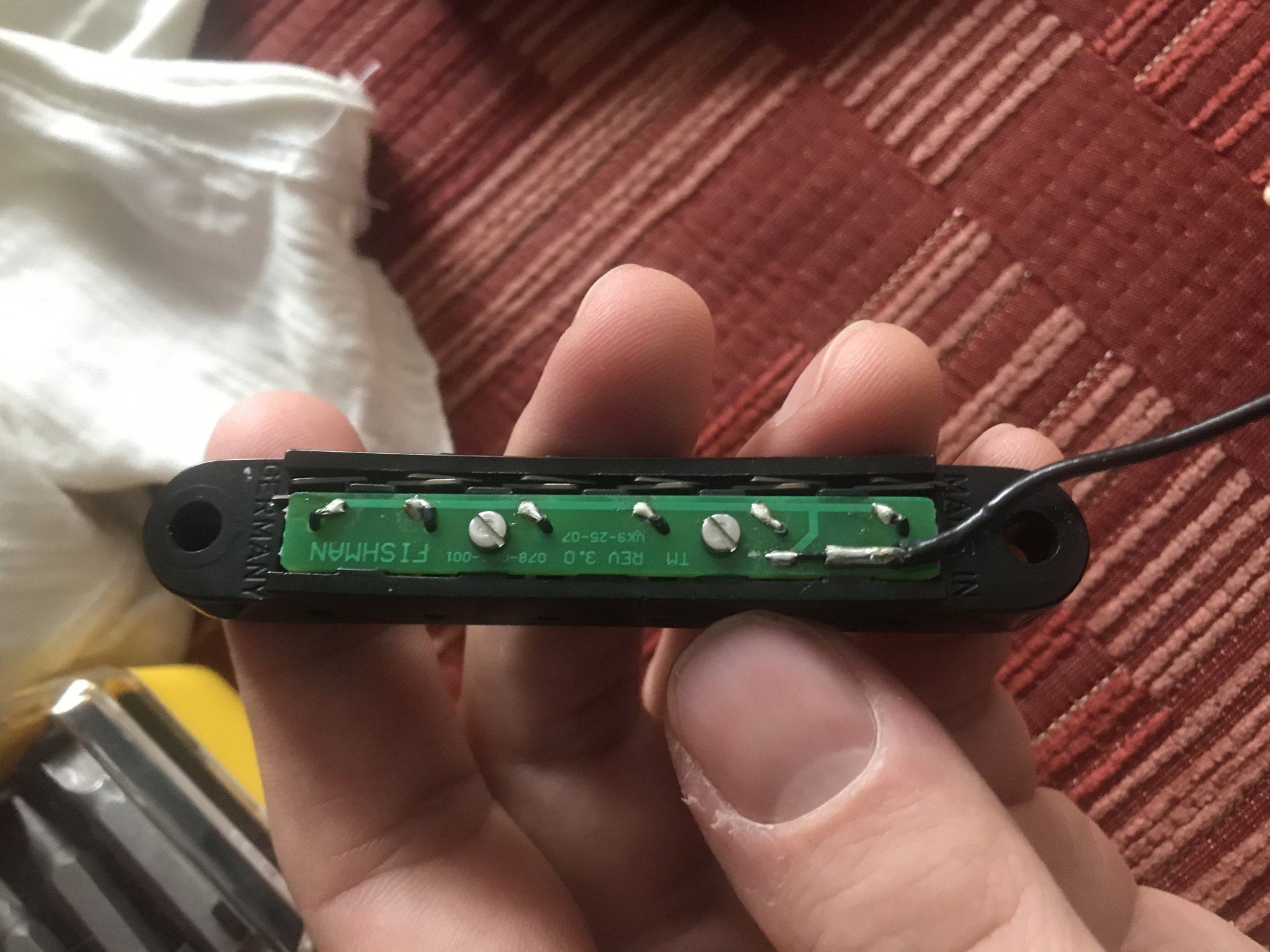 AZG, Спасибо! Врятли гнездо неправильно распаяно. Проверял мультиметром, и обратную полярность паял и разные варианты. В первую очередь, почему при касании бриджа возникает усиление фона не понятно, возможно в фишмане, что-то не то касается.