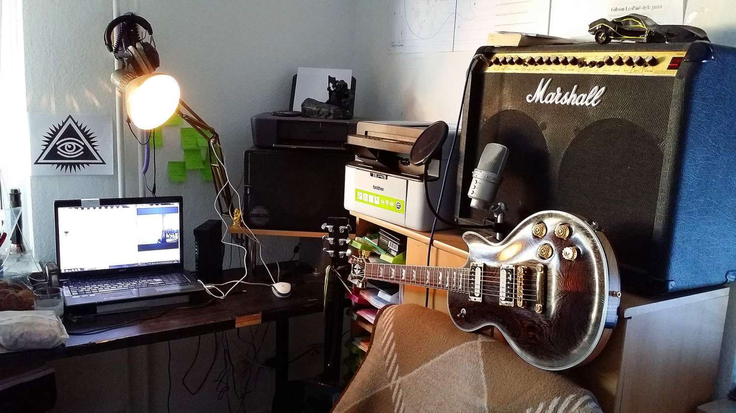 Например у меня USB микрофон.. Внешней карты нет.. придётся на прямую в комп.. Далее, у меня усилитель гибридный маршал...