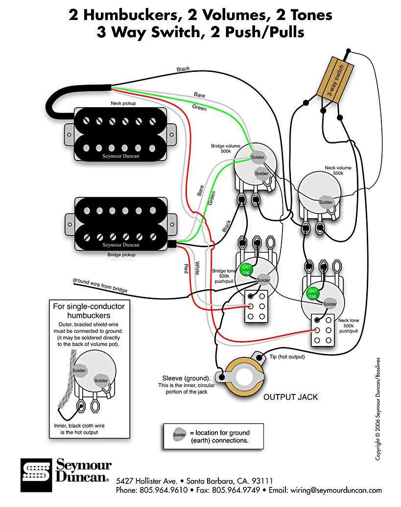 2) - 2 Humbacker, 2 Volum, 2 Tone 3 way switch 2 Push / Pulls