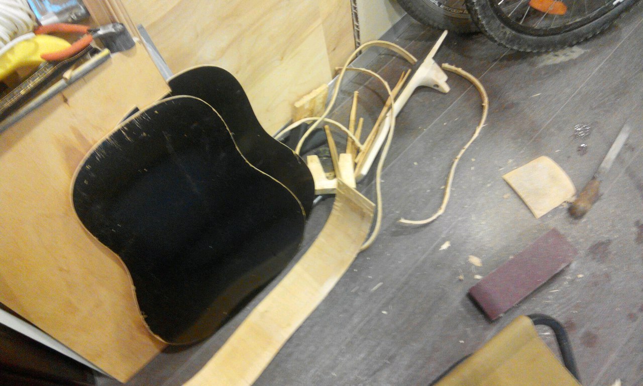 Главная цель была не использовать ничего нового, всё было взято со старой гитары, а так как дома происходит ремонт, то и инструмент по большей части весь есть