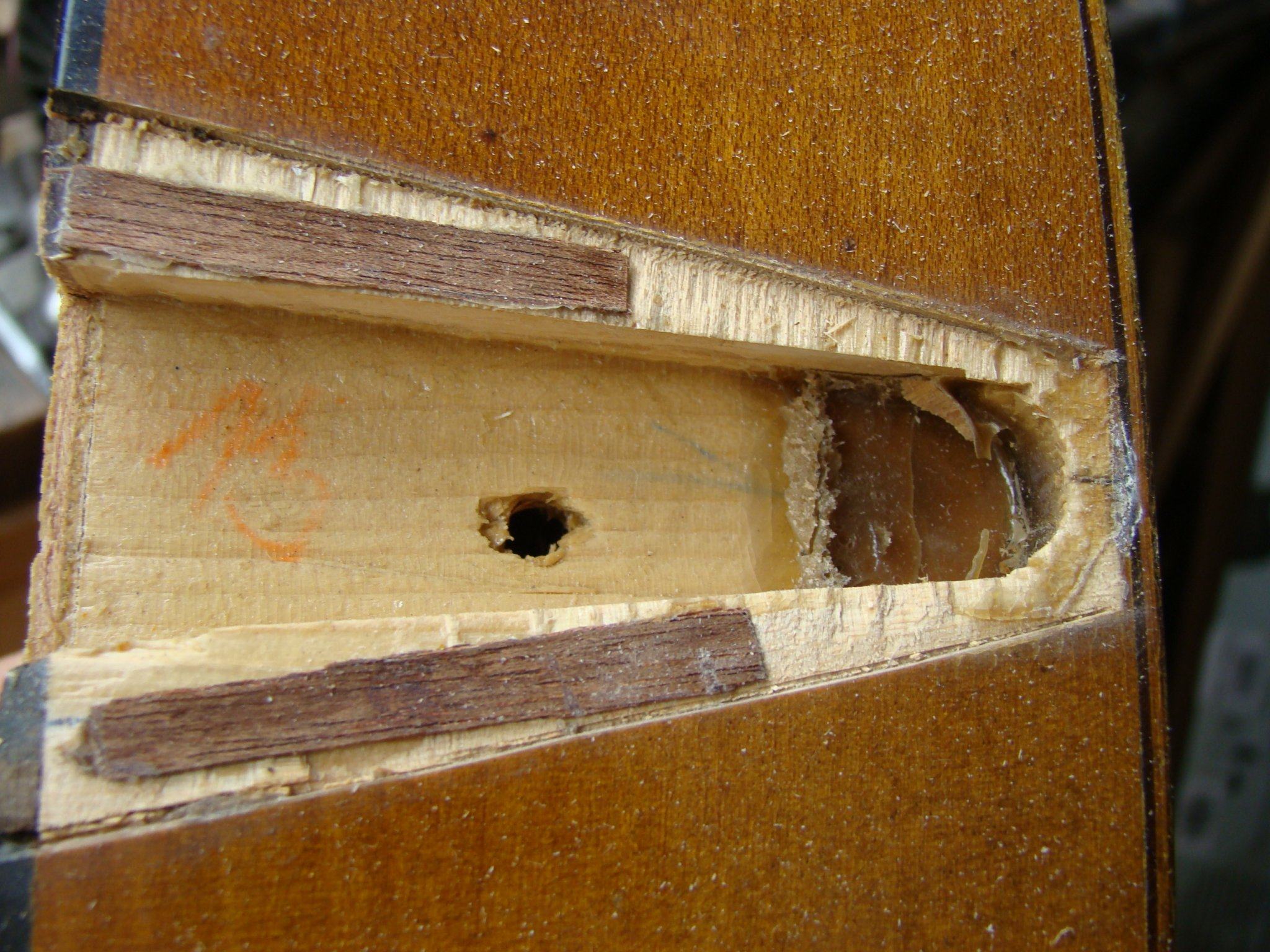 И деку еловую, встык в трёх местах, и эти, "бимсы-лонжероны" и порог и весь оригинальный древесный байндинг.