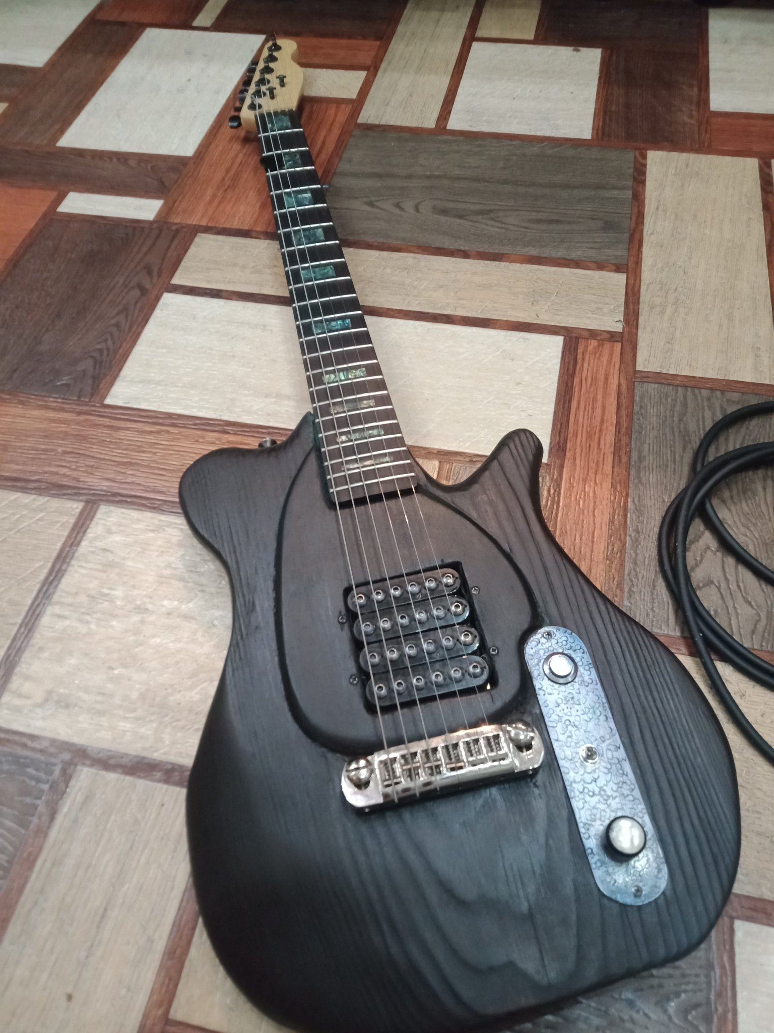 Может не сюда, но выложу своего уродца... Тушка - сосна/отсосна, гриф с Авито, звучки - belcat дешёвый ширпотреб, второй включается последовательно первому... Покрытие масло-воск-канифоль-коллер короче алхимия жёсткая, тушка прожарена горелкой, топ, если его можно так назвать - разделочная доска из бамбука... Собрано через Ж, но вроде звучит сносно и даже строит... С расположением датчиков накосячил, не совсем соосно со струнами стоят и расстояние до струн великовата, поэтому джи-джи высекать приходится от души. Благодарю за внимание!