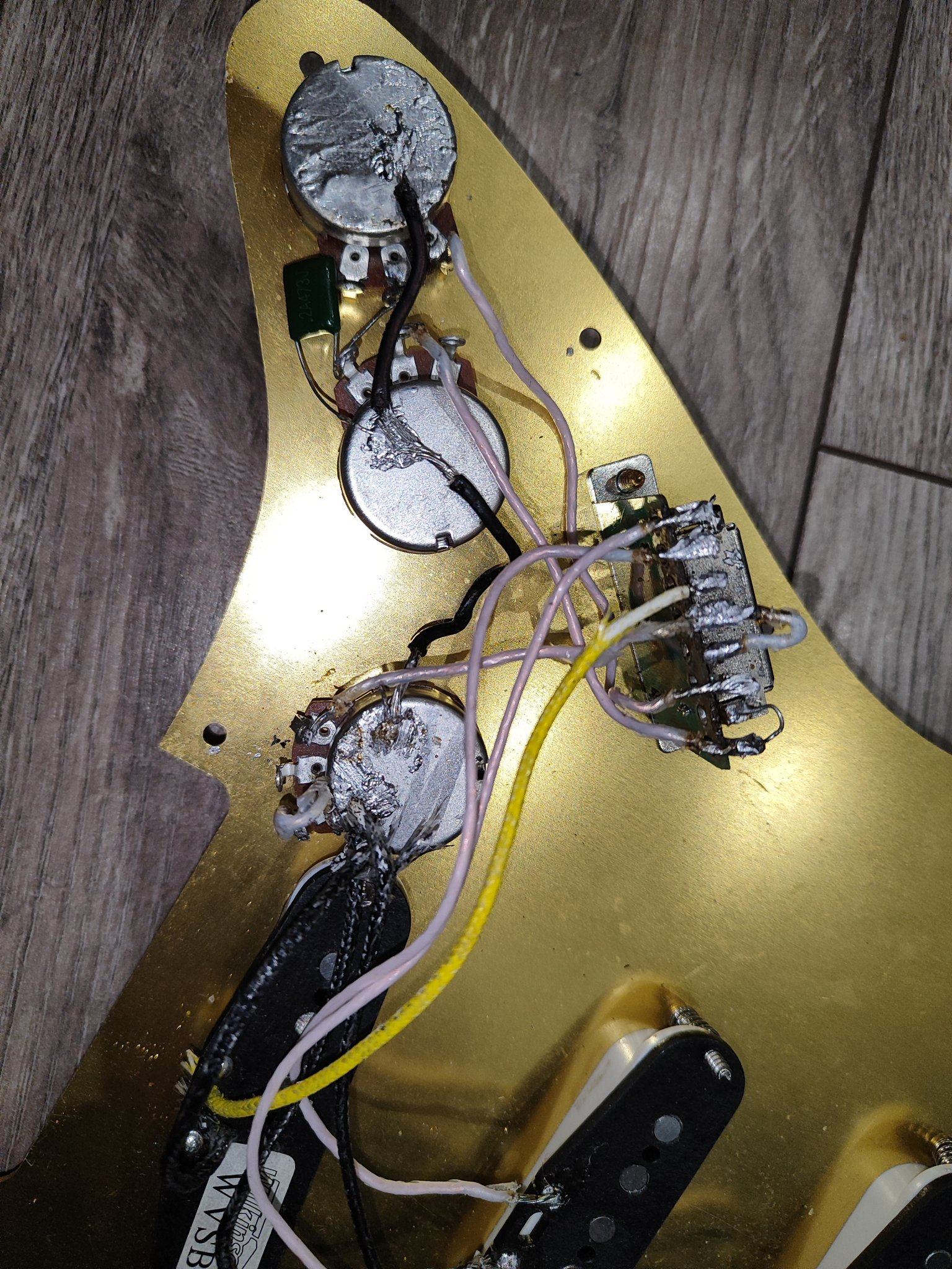 народ, вот какой вопрос назрел - принесли гитару в перепайку. я привычно сказал - сделаем, и взял заказ. а там клиент отсечки хочет, и хочет всё это реализовать на 5челчковом симметричном стратосвитче. я когда поразмыслил немного, припомнил, что все подобные распайки делают на ибанезах. но у них свои замудрённые несимметричные свитчи. стал честно благородно гуглять. пока что за полдня не выгуглил ничего путного - ну не выходит на стратосвитче отсечек понаделать для 2 хамбакеров. подскажите, может я где неправ? может есть схемка заветная?