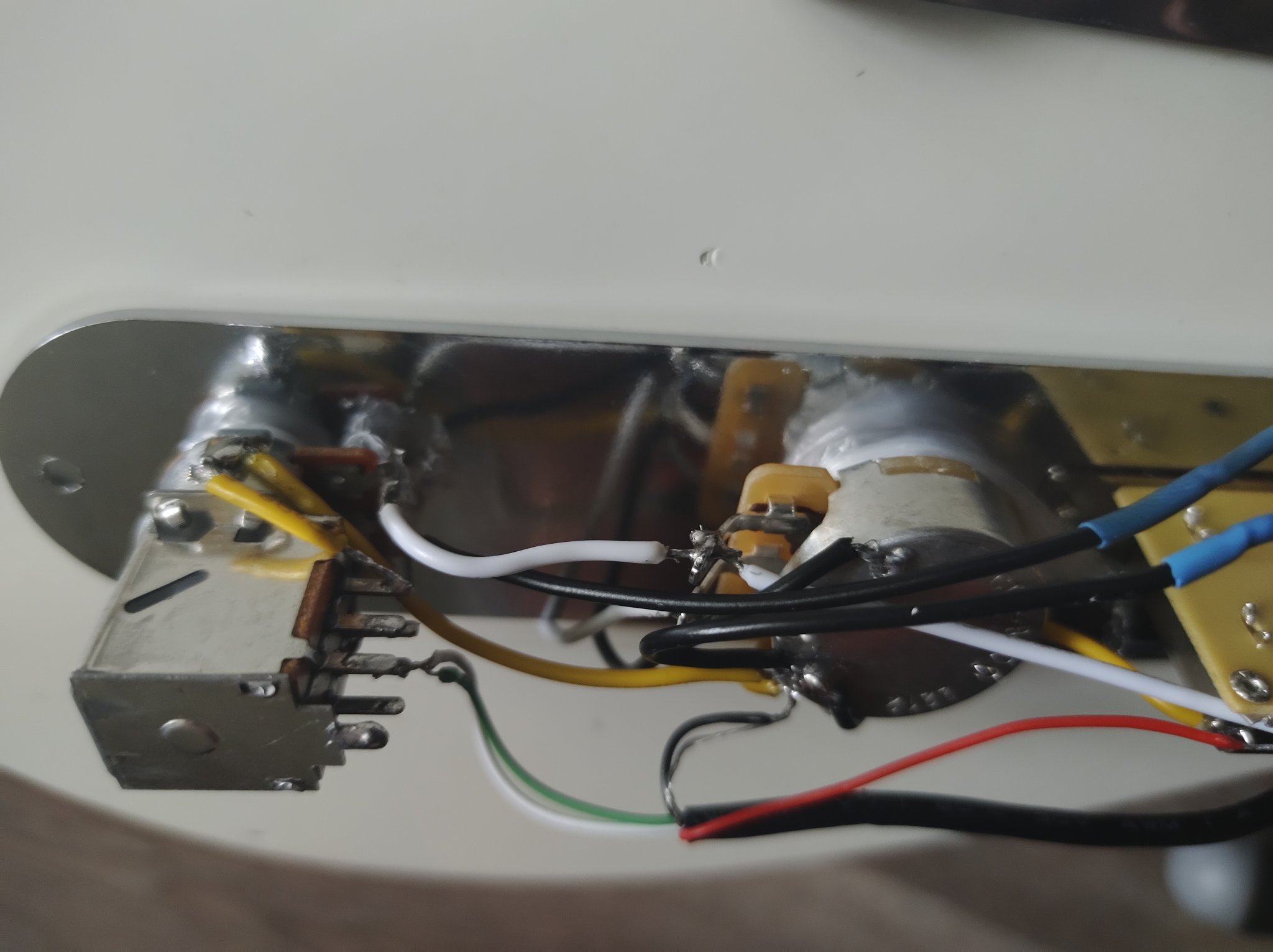 Demetry, распаял датчик ты верно, но хреново - сопли и холодная пайка. Это нужно перепаять нормально хорошим паяльником. Или качай скилл на обрезках проводов или отдай мастеру. Если паяльник без регулятора мощности, то при низком навыке нормально спаять не получится. И ещё - на потце отсечки есть земляная клемма, провода на ней не вижу - из-за этого будет фонить. И ошибка - на потце отсечки у тебя провода запаяны на разные группы контактов (их там две, по три клеммы параллельно), потому и не пашет. Перекинь жёлтый провод на соседний контакт, чтобы был на одной линии с бело зелёным. И с корпуса тона перенеси на клемму землю, к ней легче подпаяться