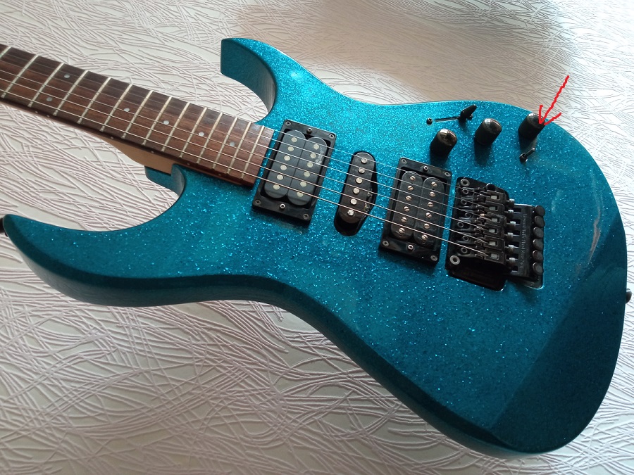 Бывают платы с двумя переключателями. Поскольку на гитаре видно только один, второй может быть вынесен на пуш-пул.