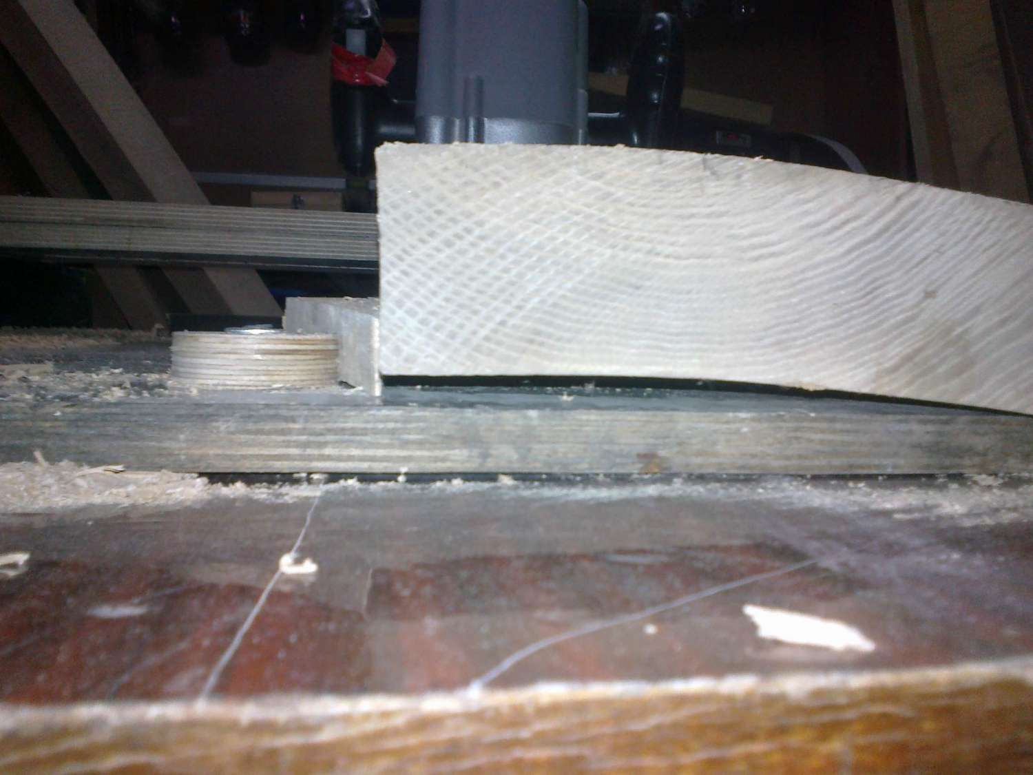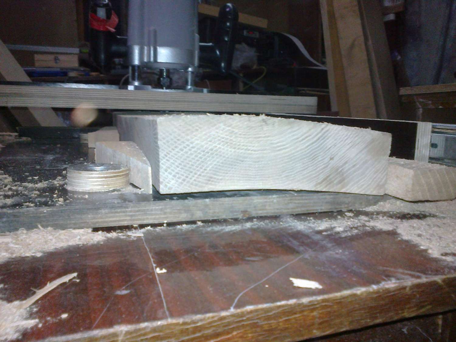 Азнаур, это тоже пробовал, но у рейсмуса только поперечный прижим, поэтому убрать винт достаточно сложно, даже вращая заготовку несколько раз.При фуговании заготовка у меня зафиксирована, я вывожу одну плоскость полностью, а потом уже пущу на рейсмус.