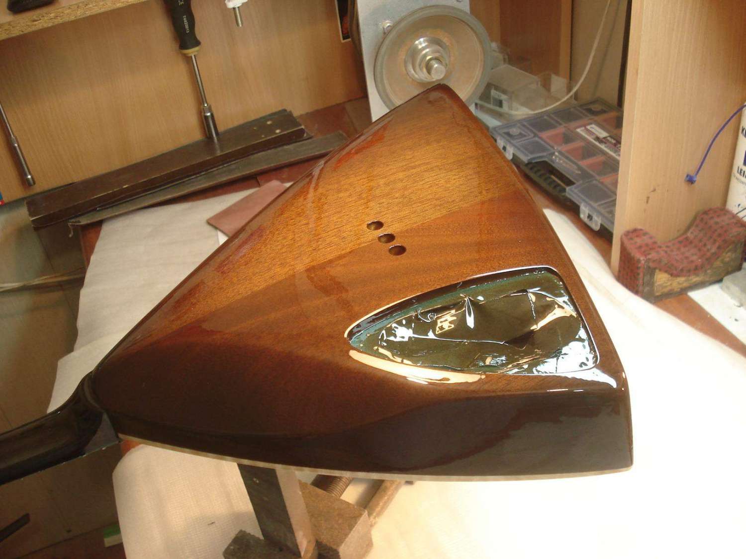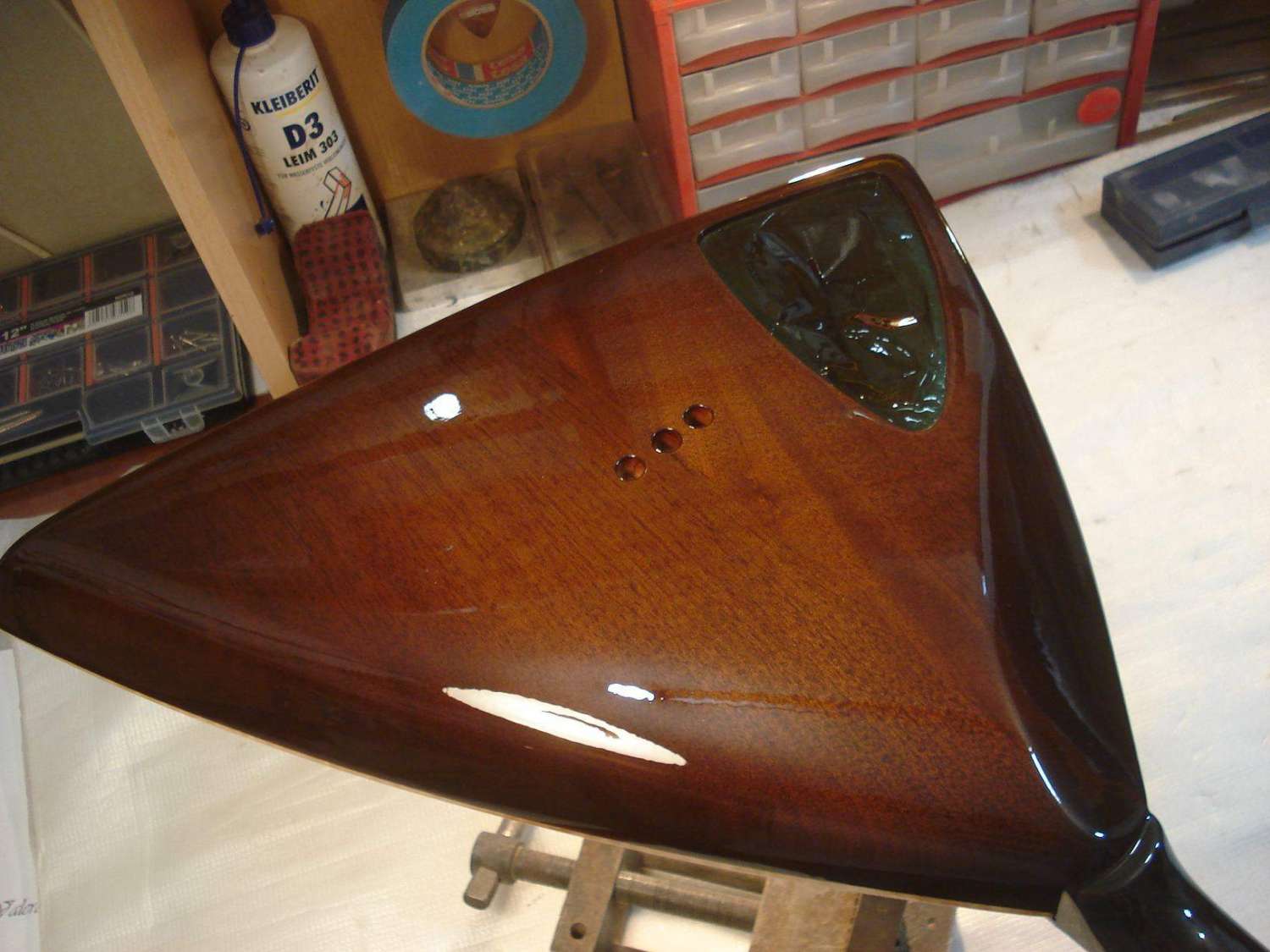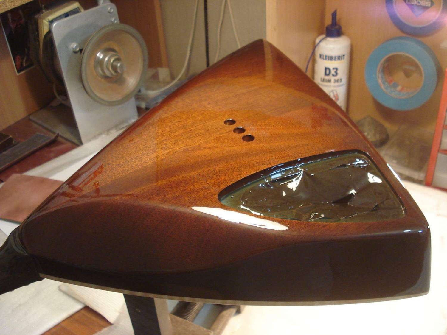 Теперь смазываем накладку клеем и устанавливаем её на место вечного пребывания))