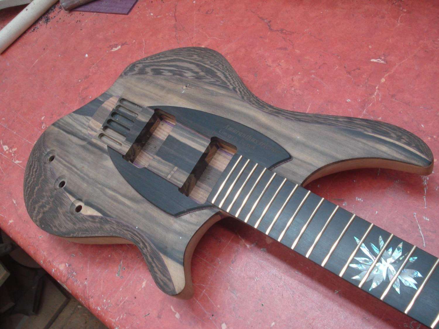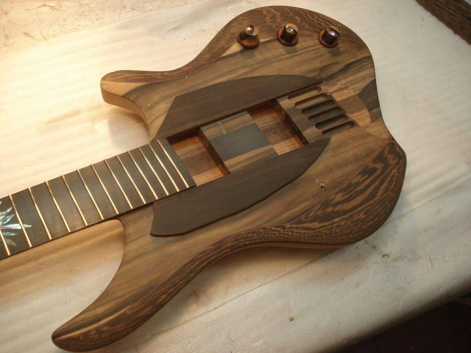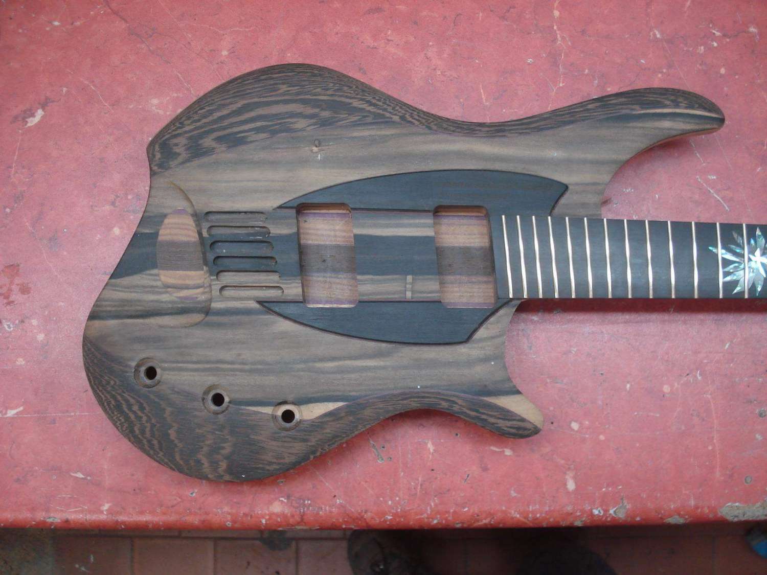 чувствуется, что в эту гитару вложено немеренно сил и времени, и как будто на последних минутах от нетерпения натянуть струны засажены эти четыре шурупа