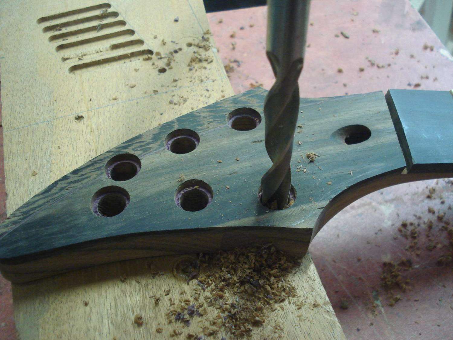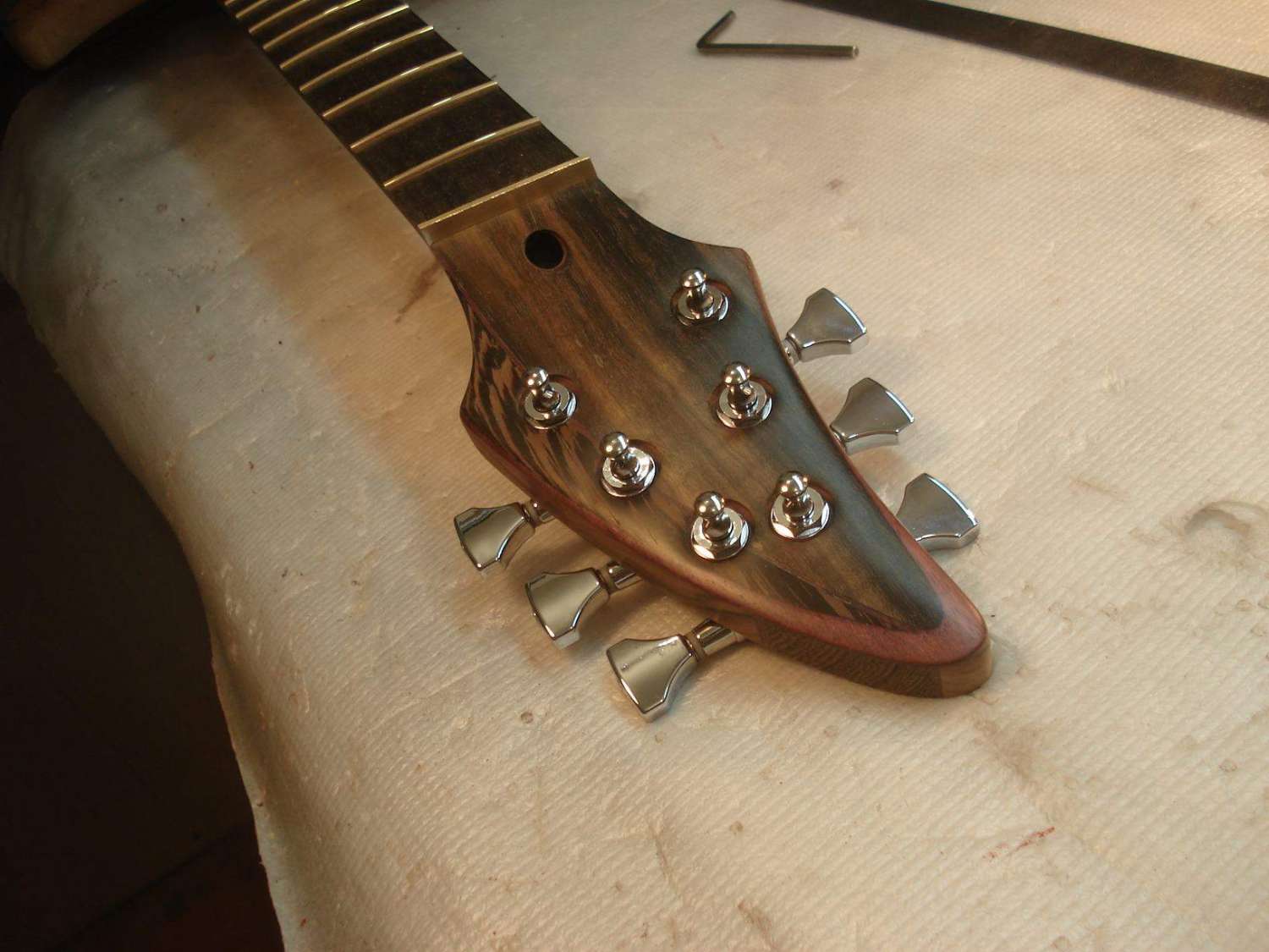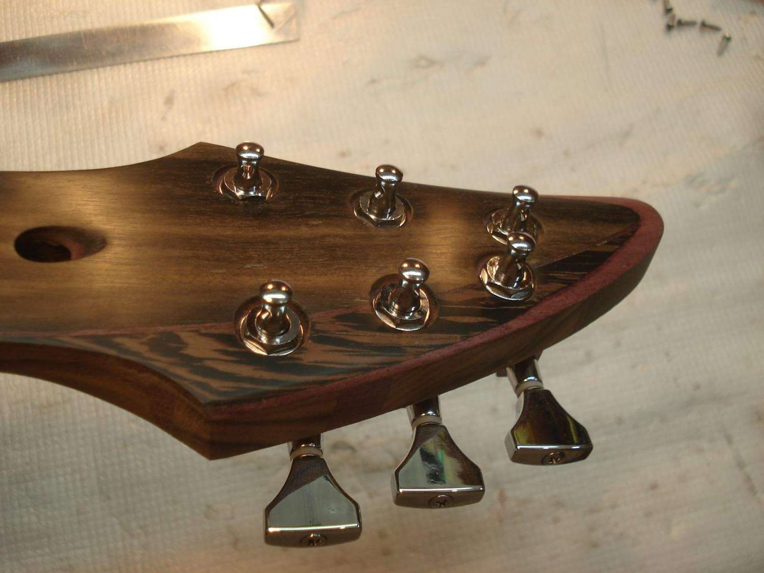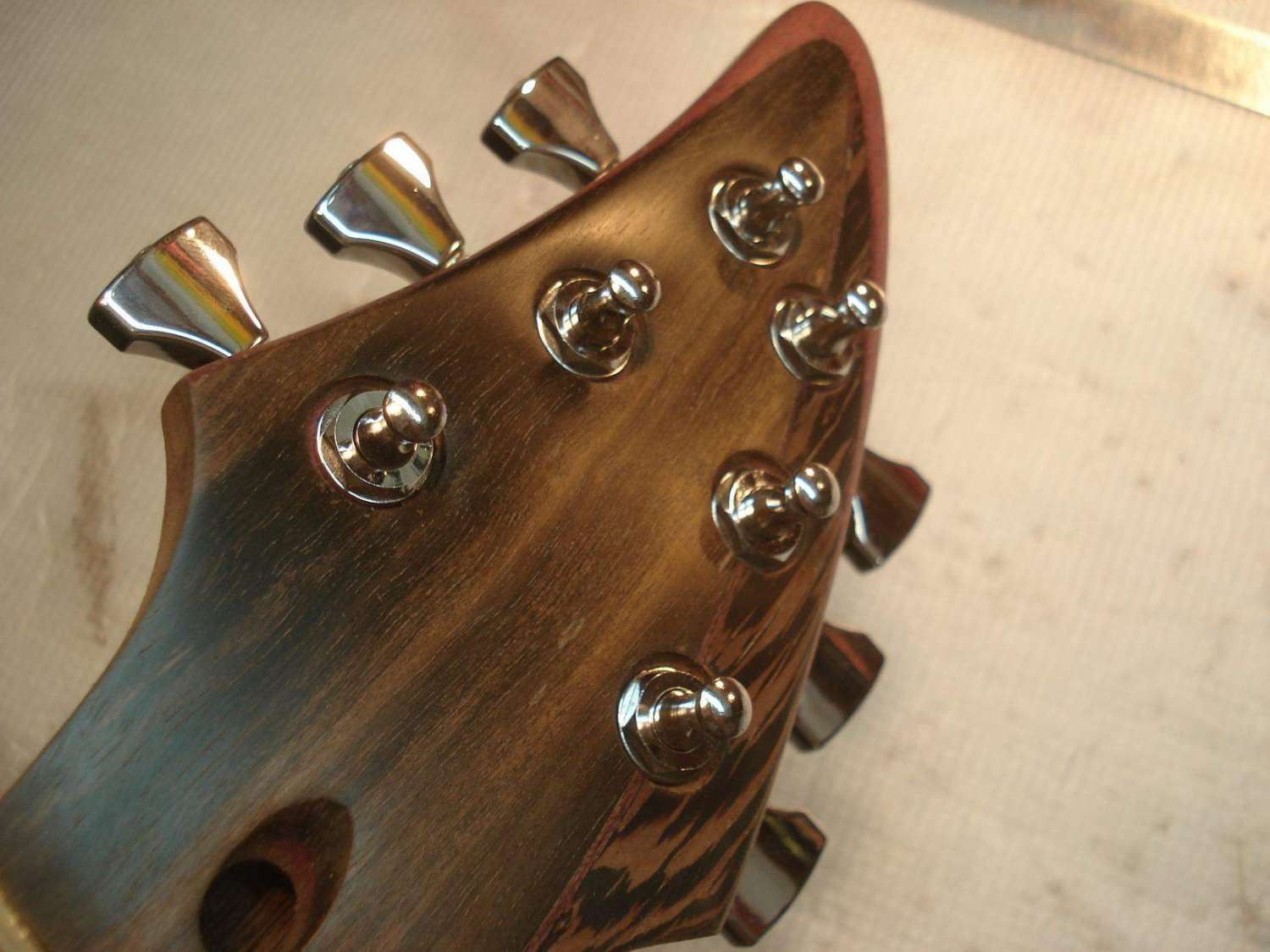 Взять тот-же Mayones(У Carvin тоже так вроде). Здесь я первый раз вижу, что бы многослойный гриф был болчёным или клеяным.