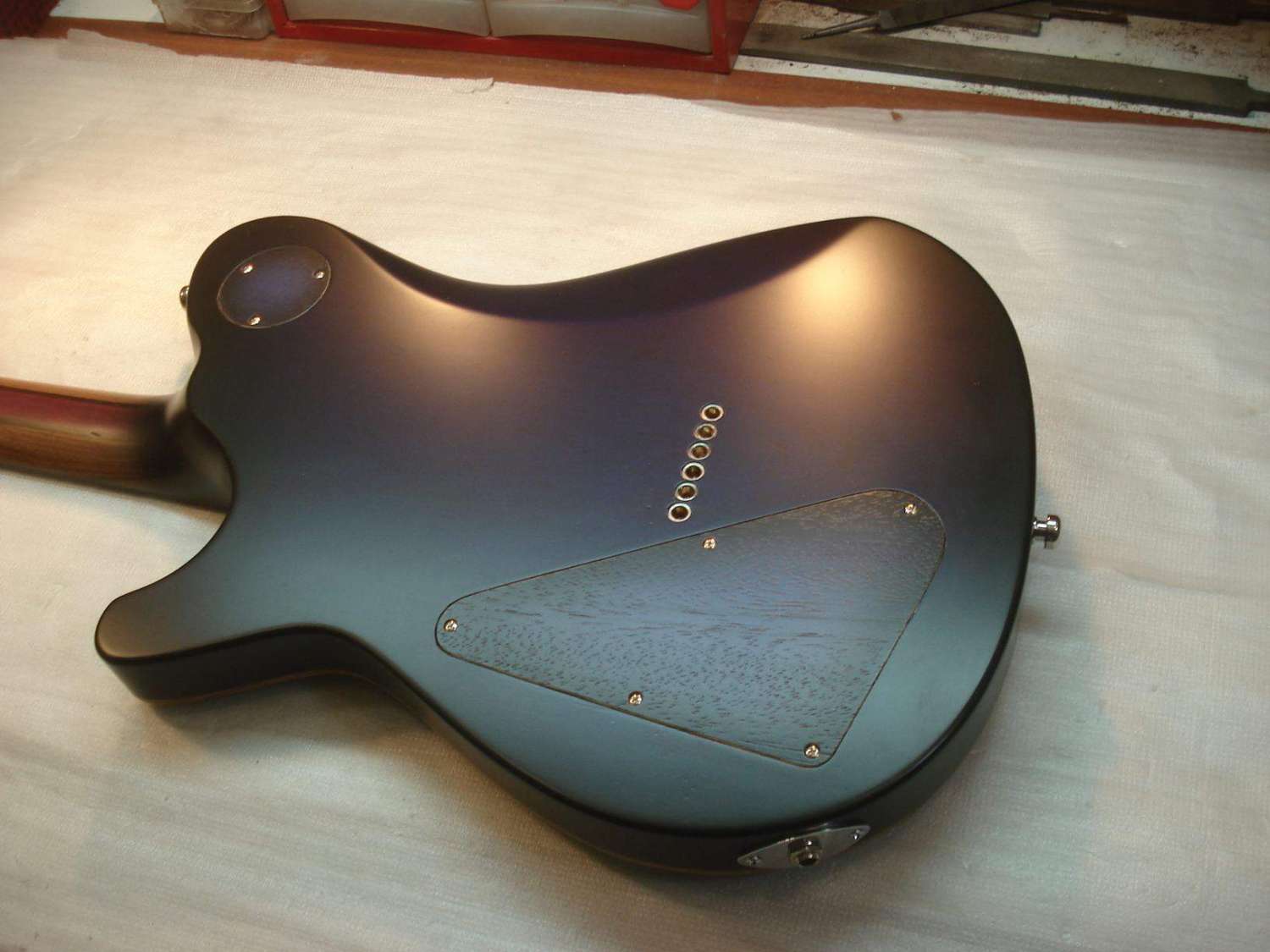 Понравилось, что под большой крышкой темброблока экономная выборка. Правильное такое понимание, что дека это всё же массив, а не сыр и не дырки со стенками.