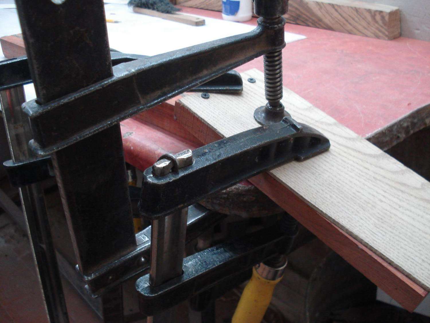 Алгоритм такой же, как и при любых склейках: для того, чтобы меньше крутило, при косослое склеивается "ёлочкой". В идеале, конечно, подбирать радиальный срез.