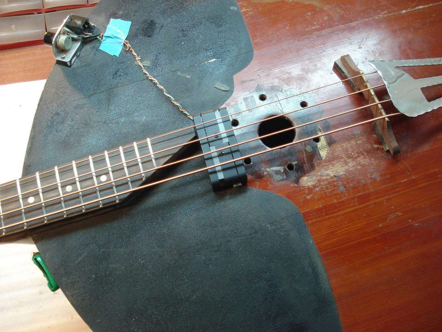 это домра-контробас (Ссылка на вложение) струнодержатель какой-то хитрый и длинющий: часть от Musimы и что-то очень длинное ещё