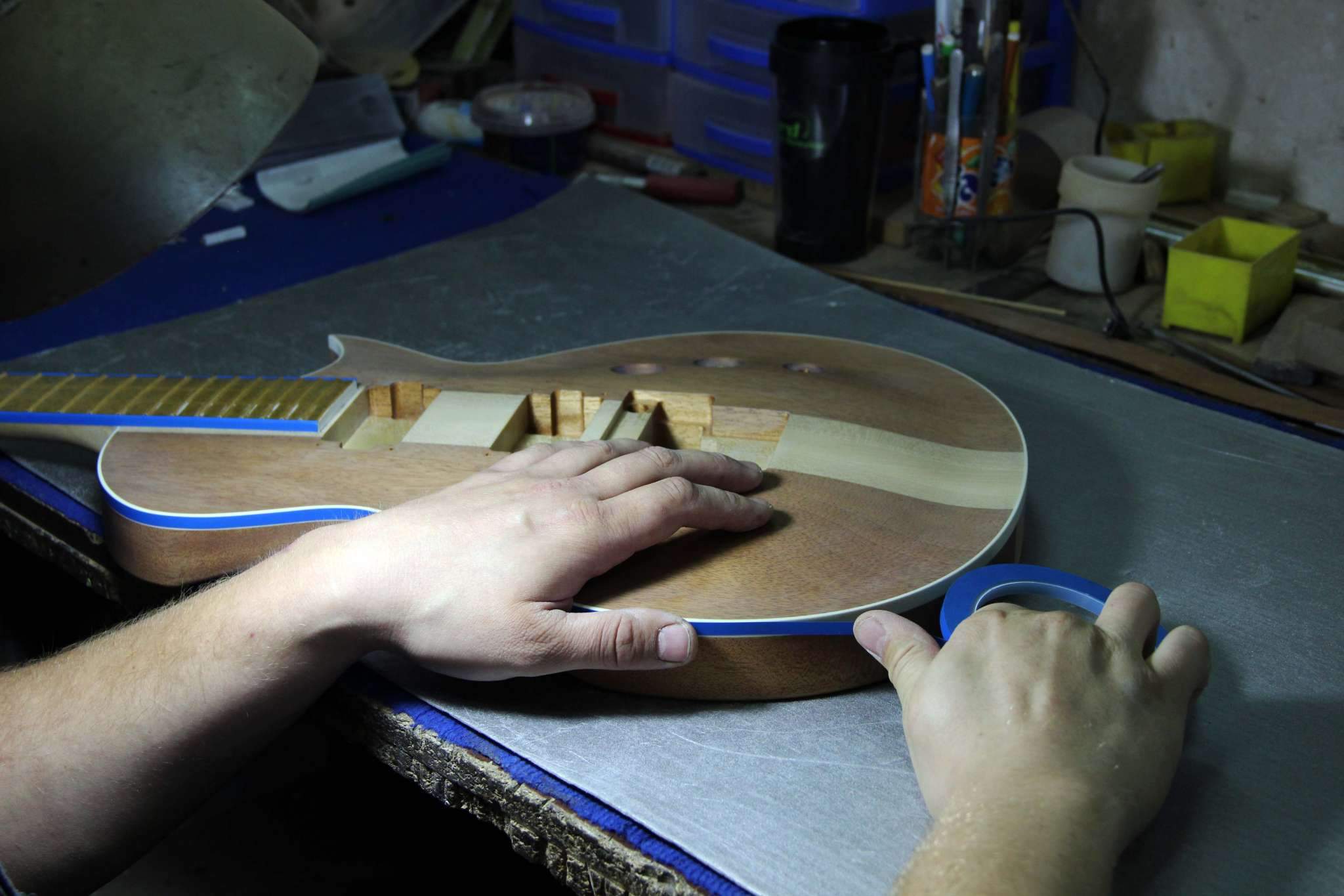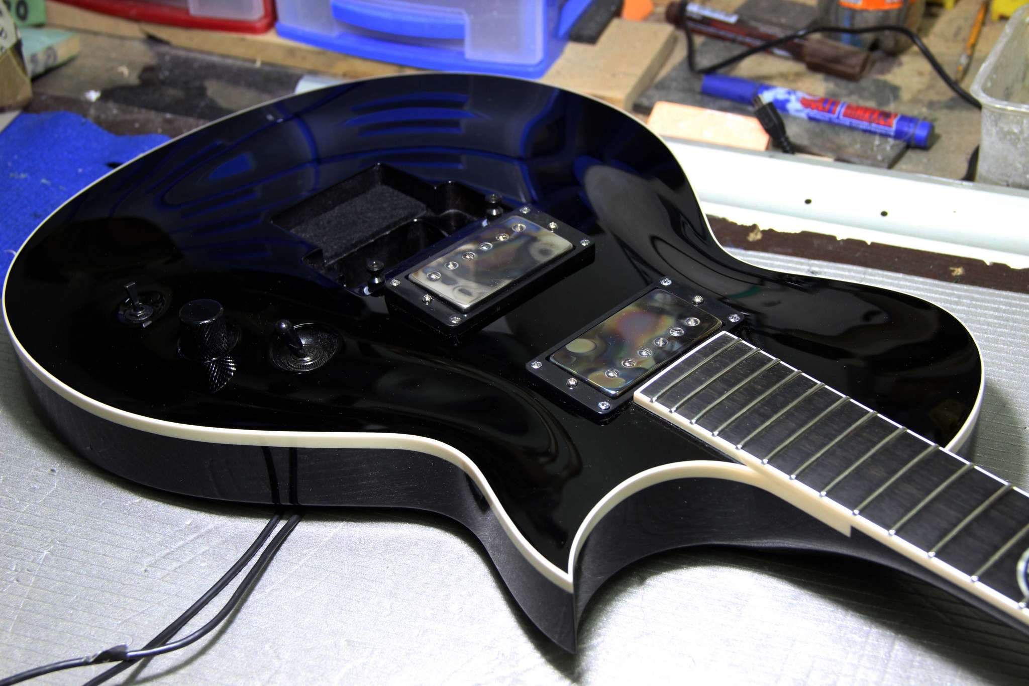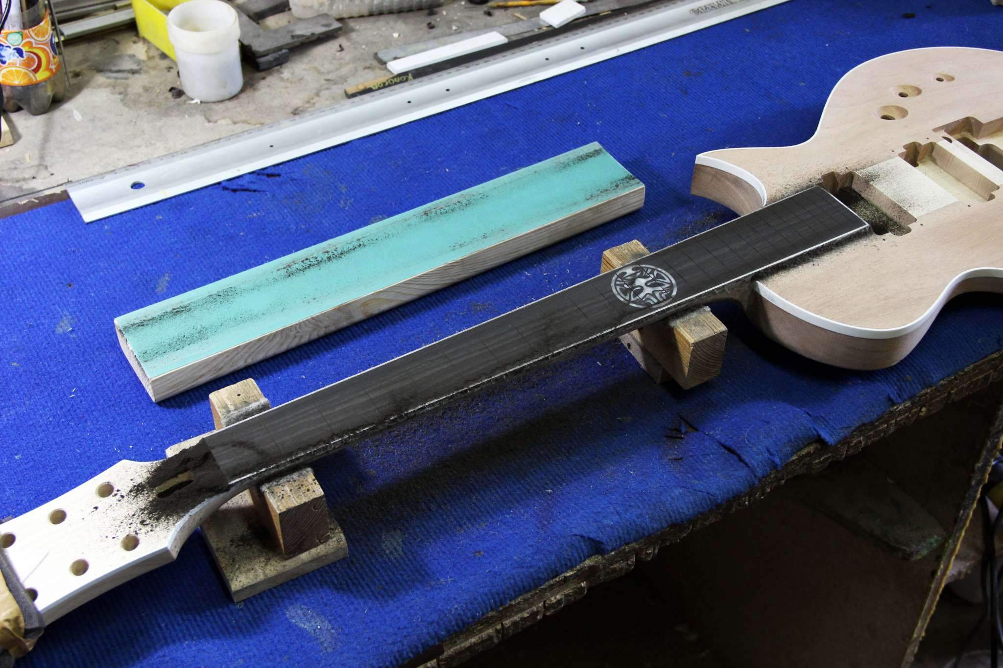 SLK, если дека плоская, и накладка лежит прямо на ней, то да, будет небольшой угол, с арктопом всё нормально. Но уж если забыл сразу сделать маркеры то ариантов мало...