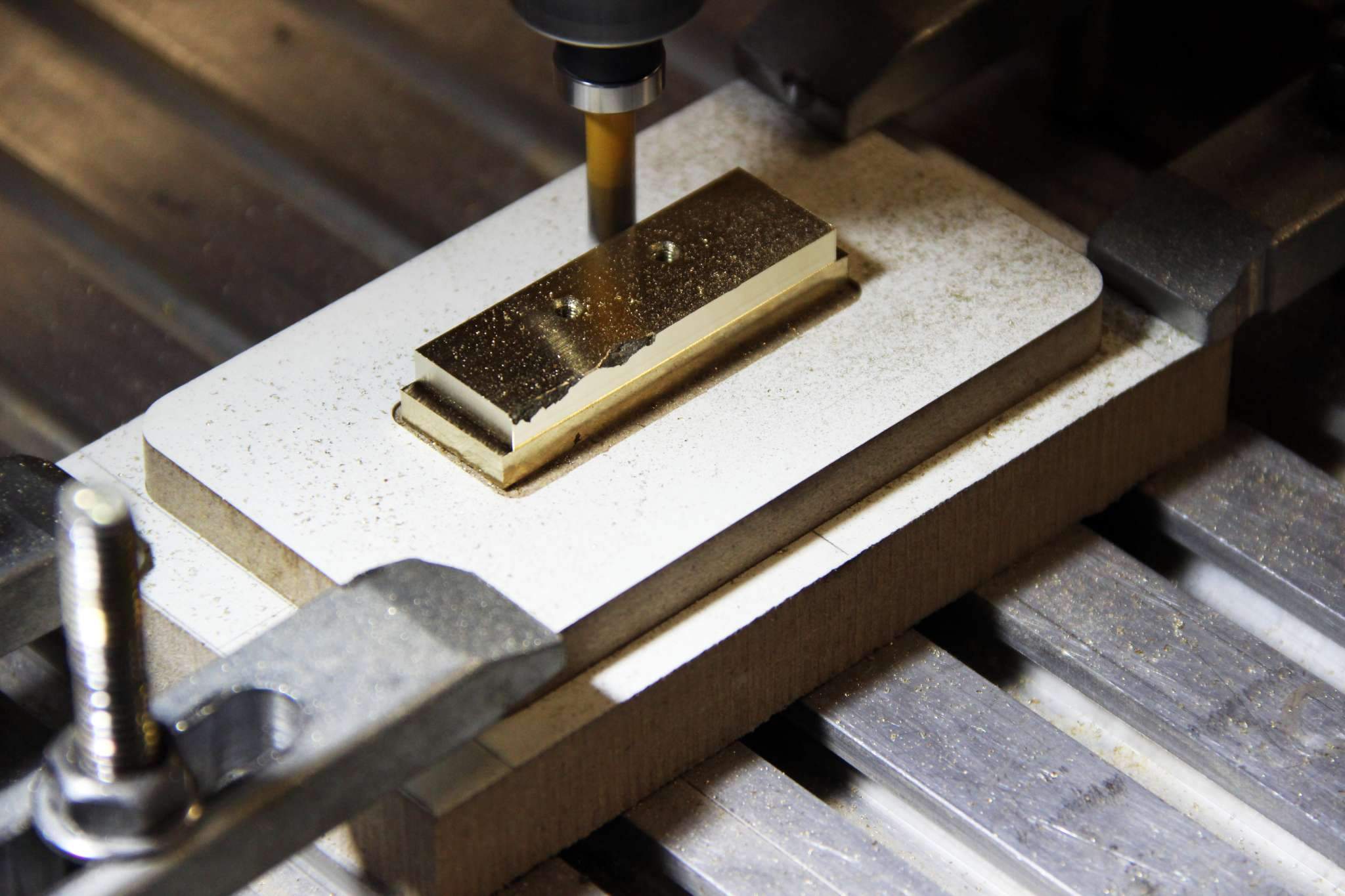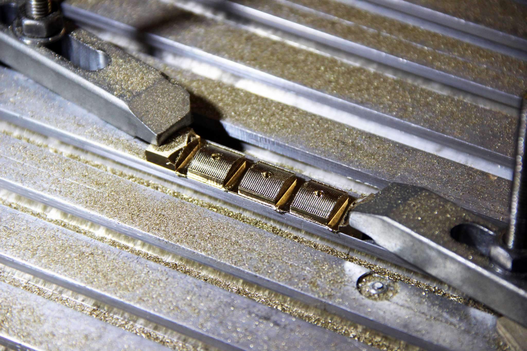 Особенностью этого инструмента является нестандартная для 6 струн ширина порожка -49.5мм, а так как на гитаре будет стоять флойд, топлок пришлось сделать самому, из бронзы, с него и начнём).