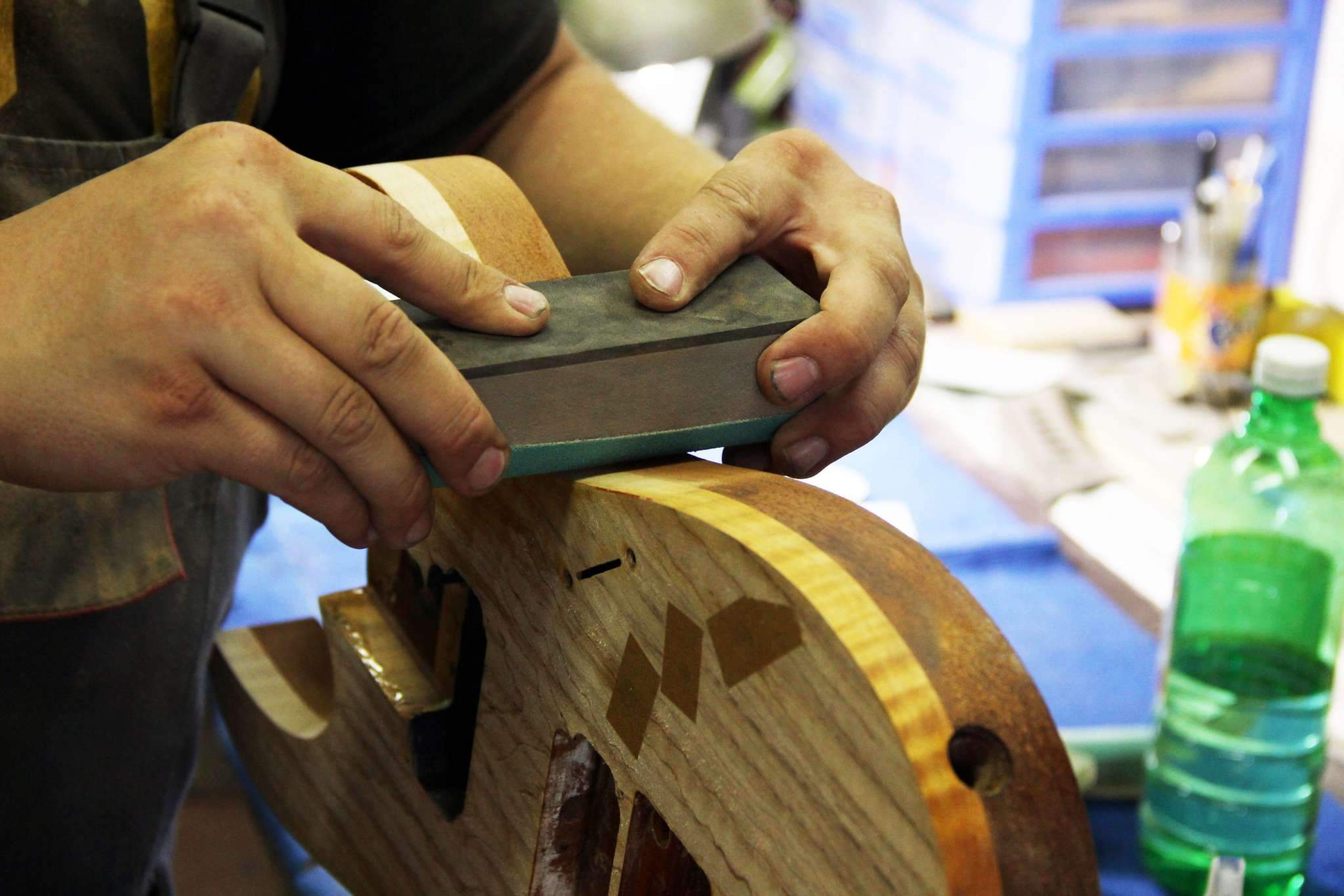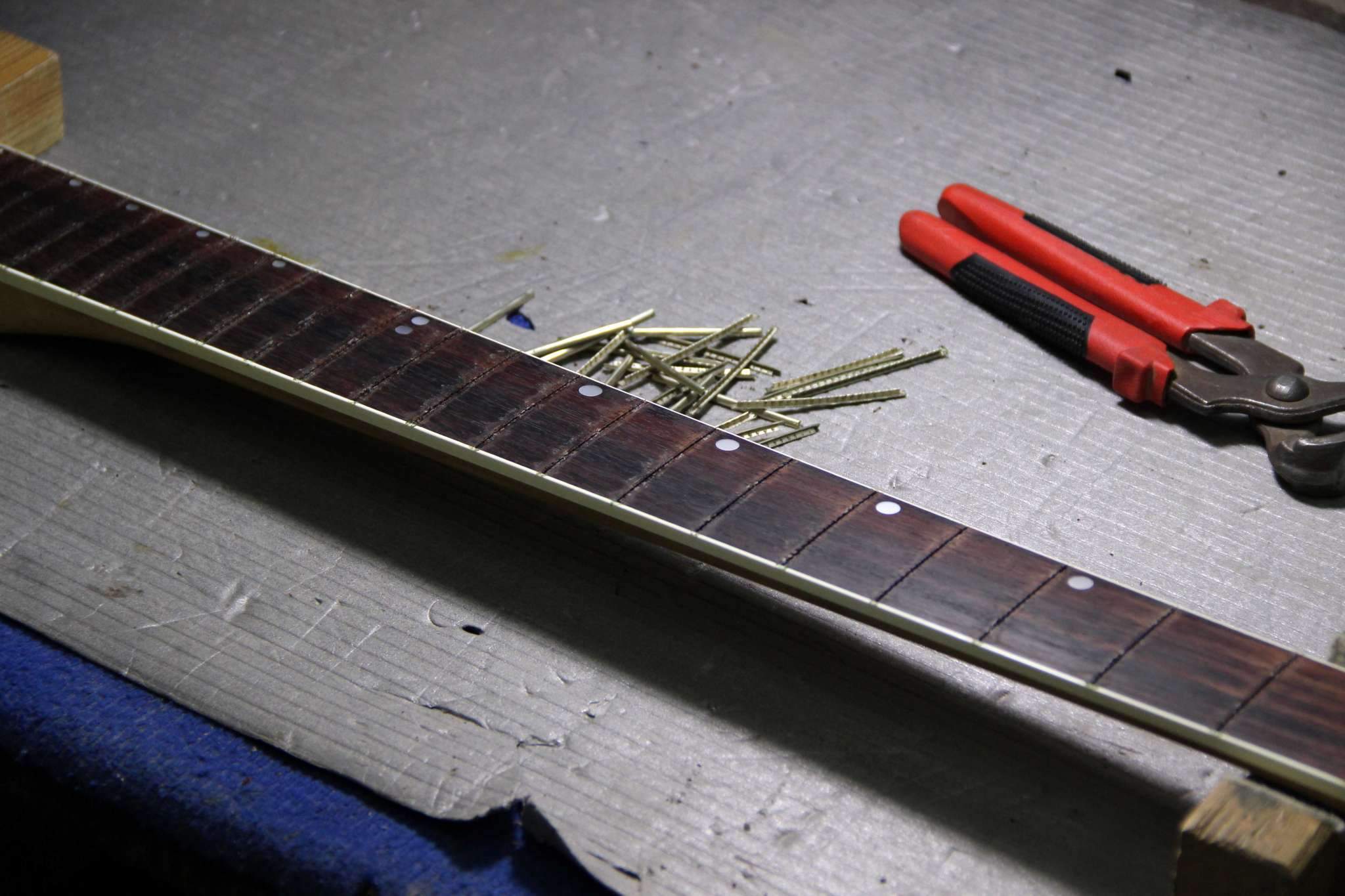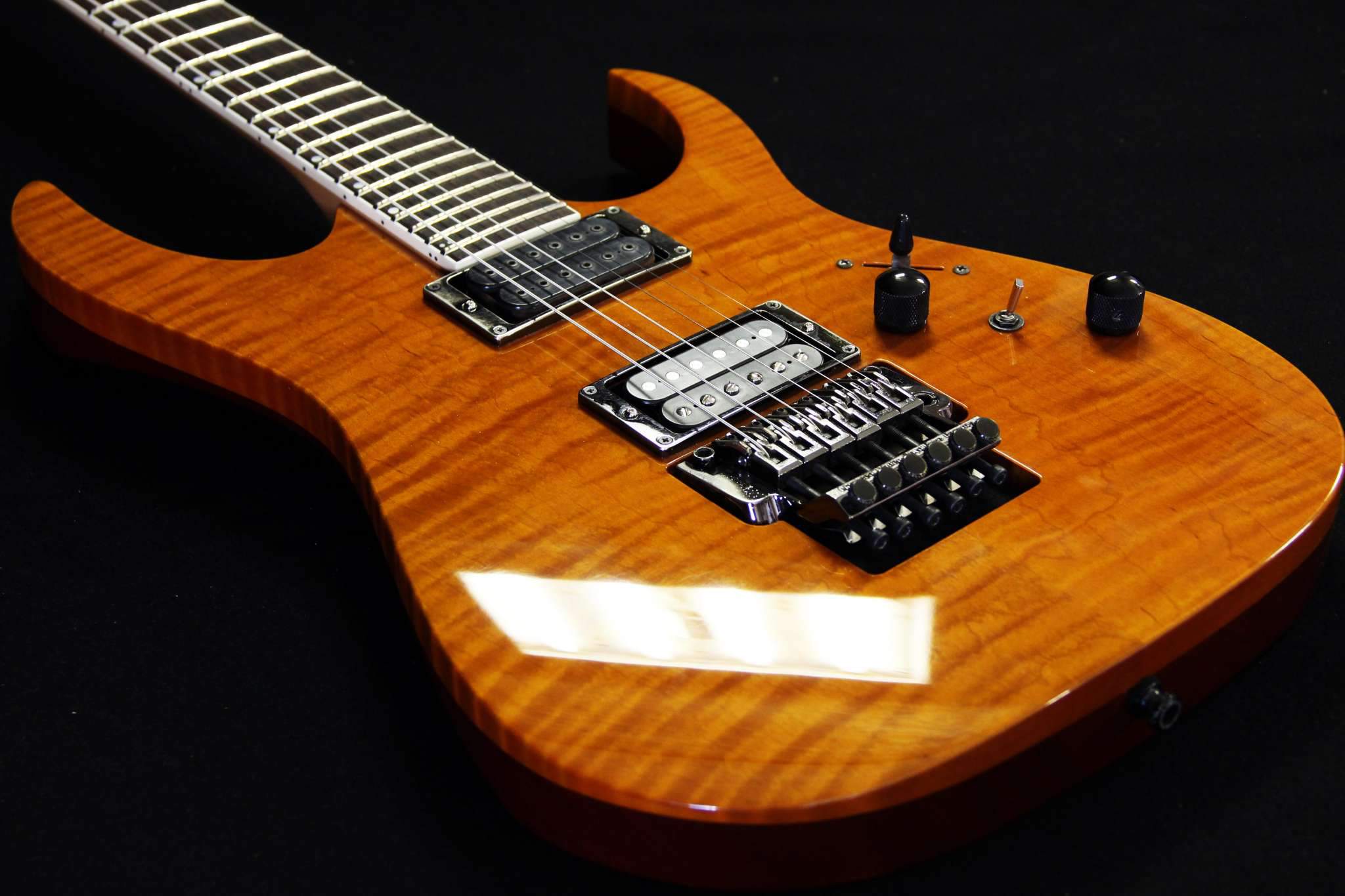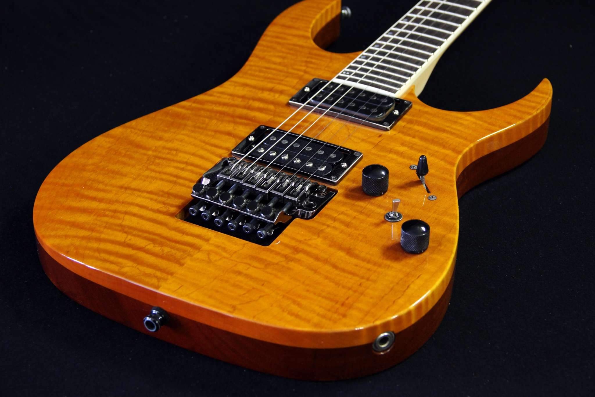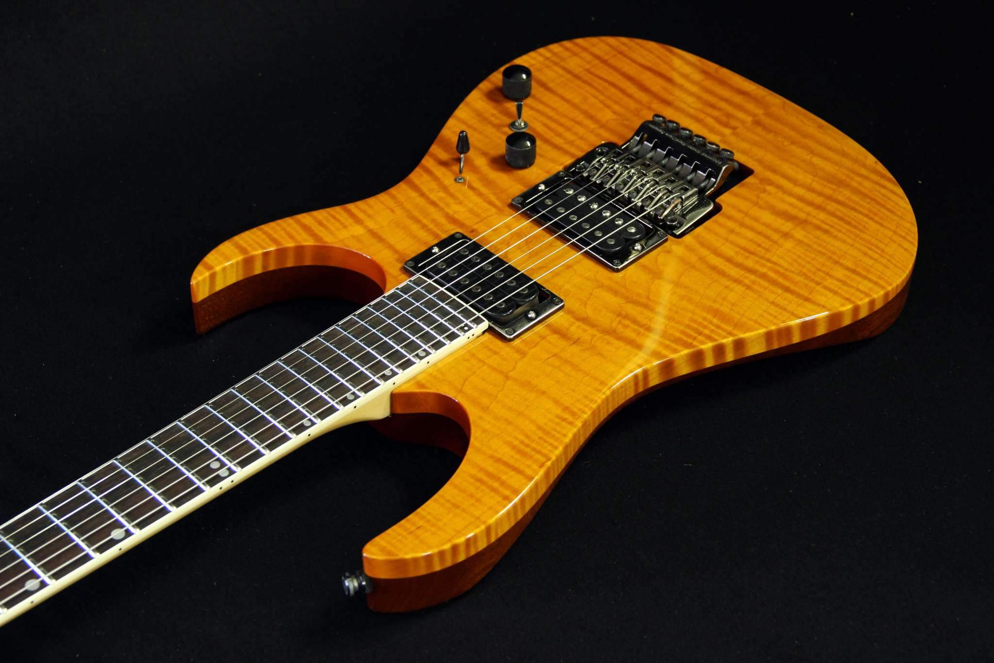 Следующий проект сквозной суперстрат, гриф клён\орех, дека ольха, топ стёганый клён, накладка эбен. Инкрустация из натурального перламутра.
