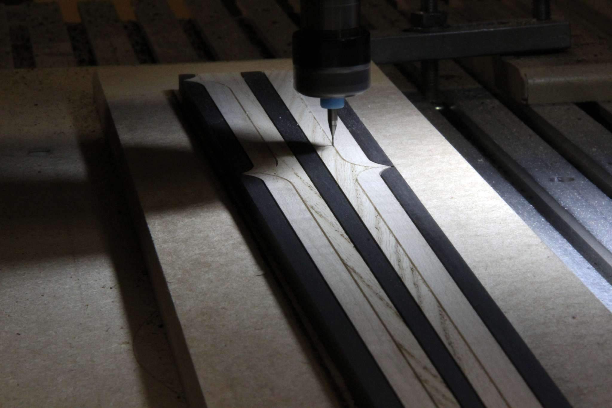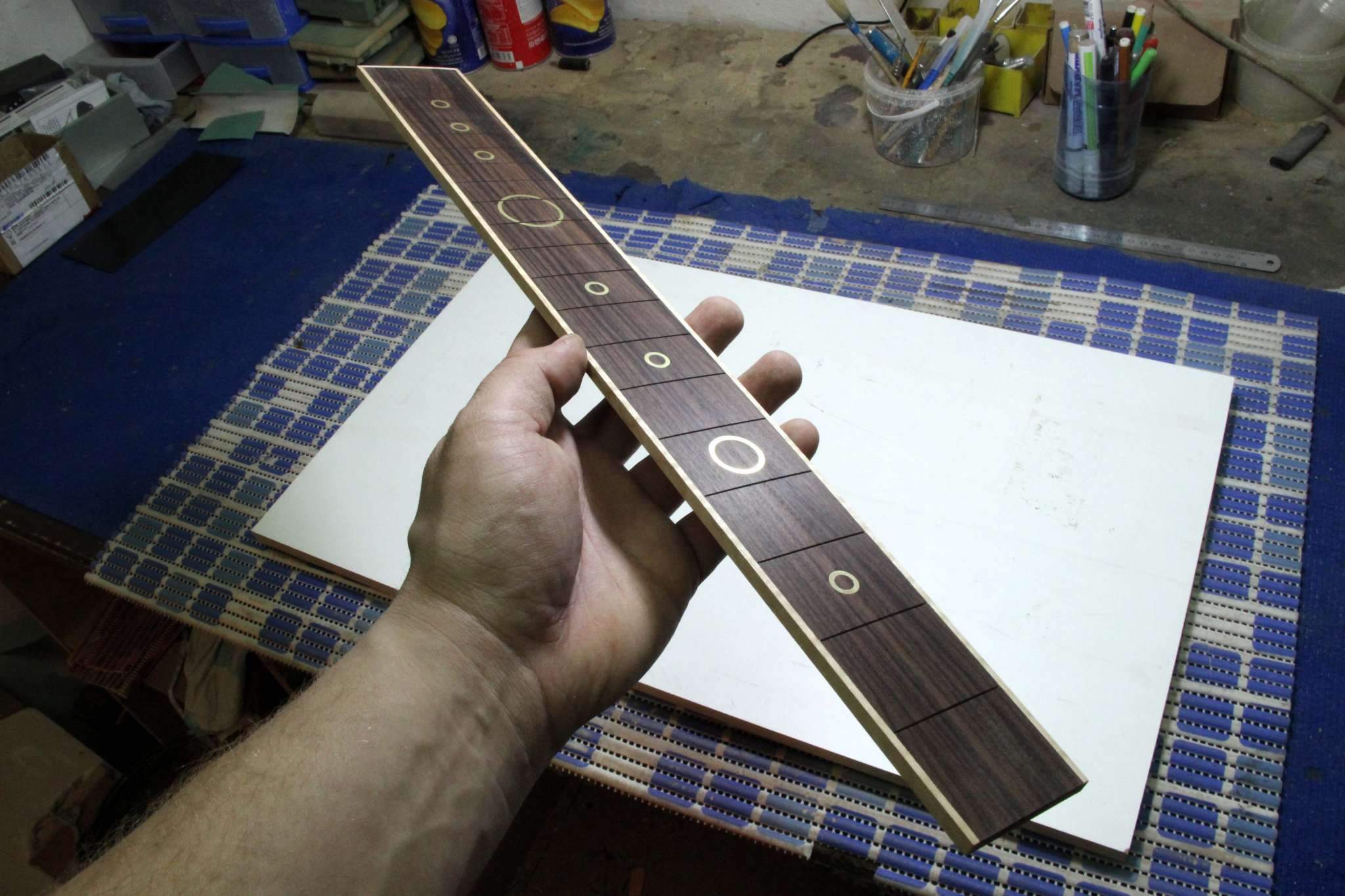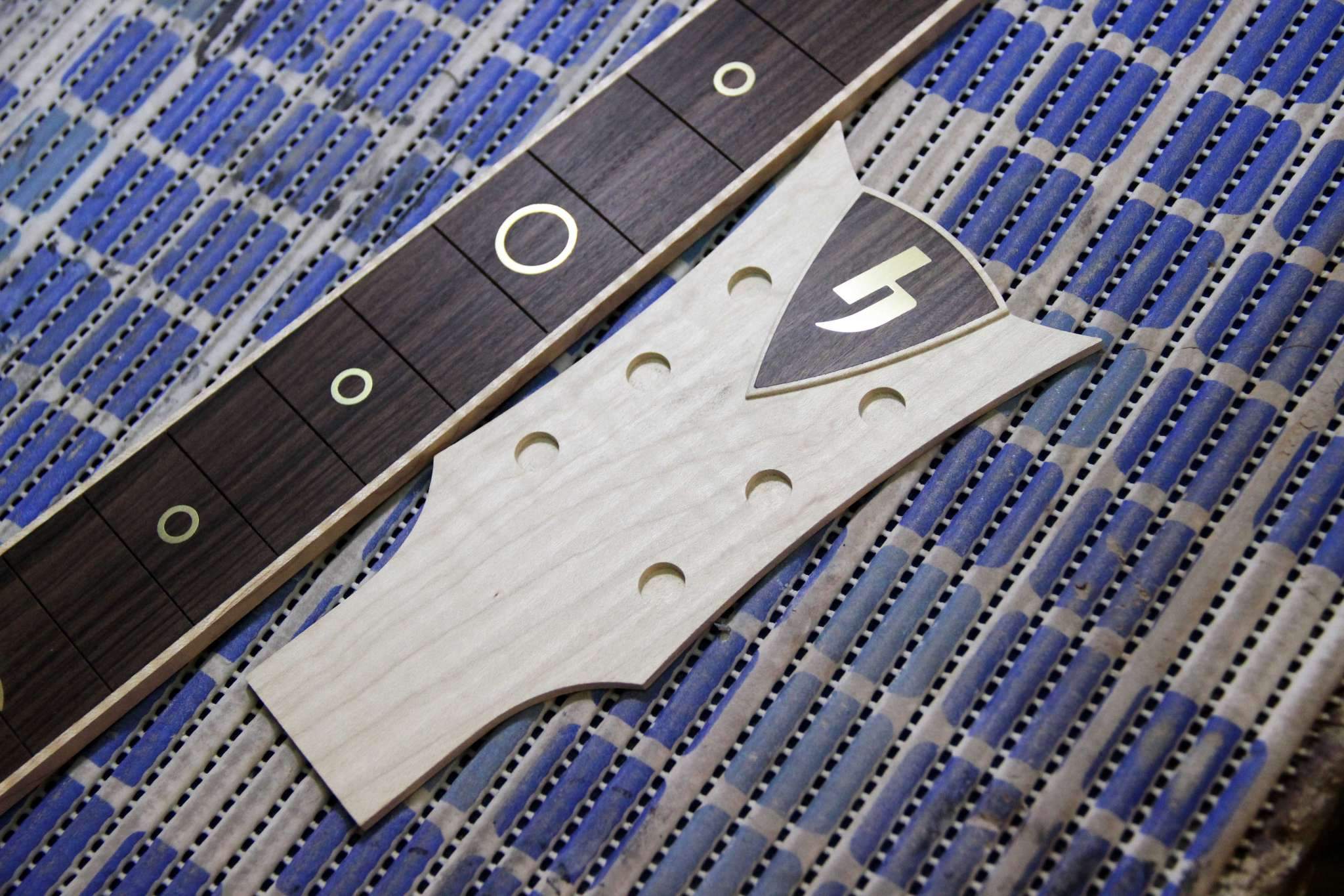 Тем не менее, следующий проект, это некое продолжение темы с драконами, на этот раз это сквозная стрела из ореха, инкрустированная несколькими видами клёна, ясенем и палисанлром... и укомплектованная бриджем, который разработал и изготовил я сам)