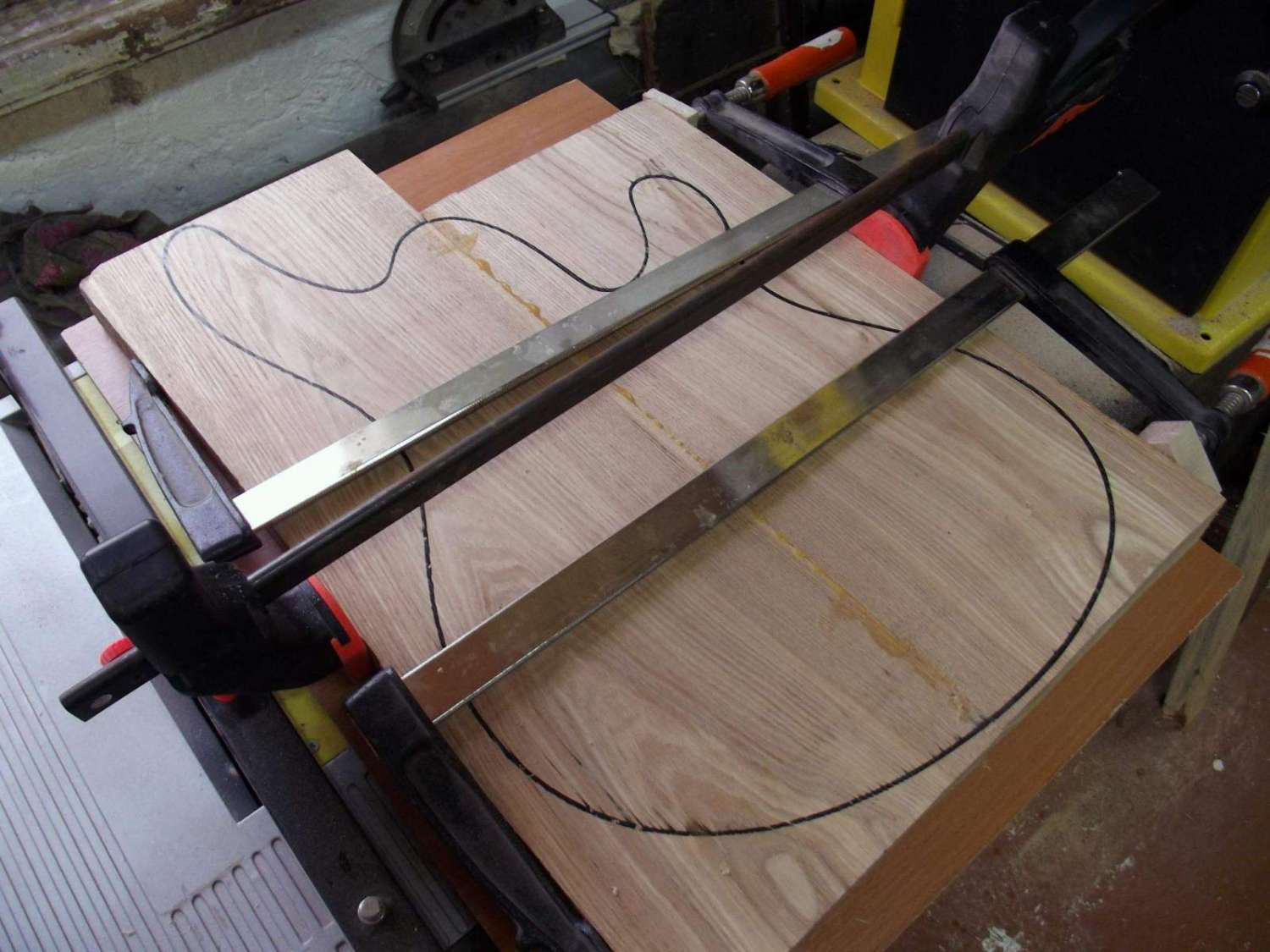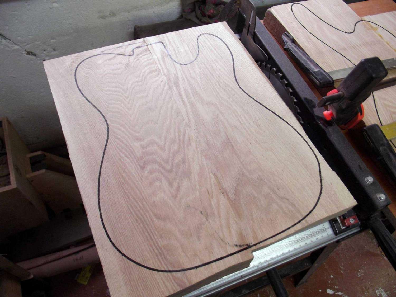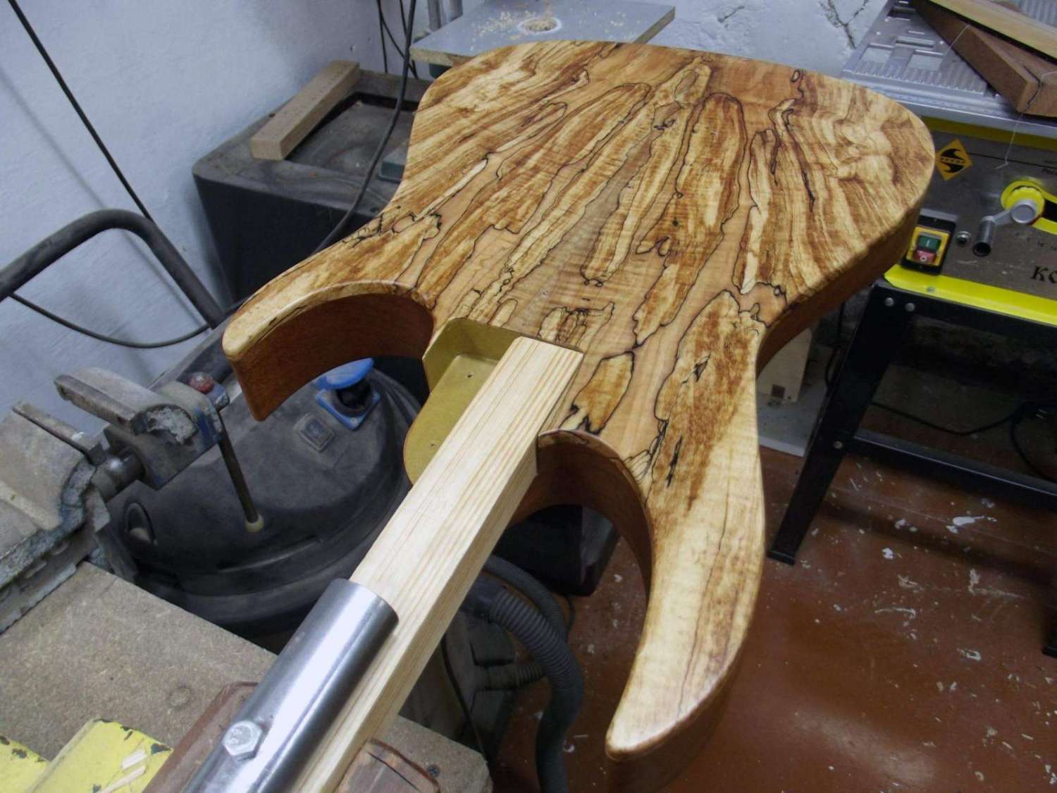 бас 5 струн, дэка ясень + кленовый топ + прослойка из шпона махагони
