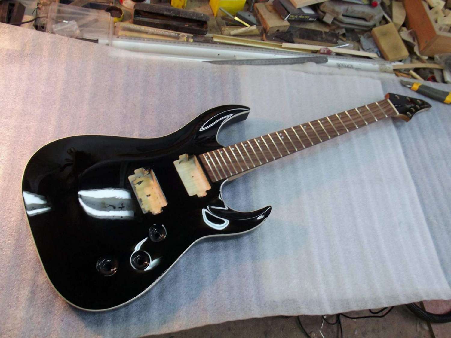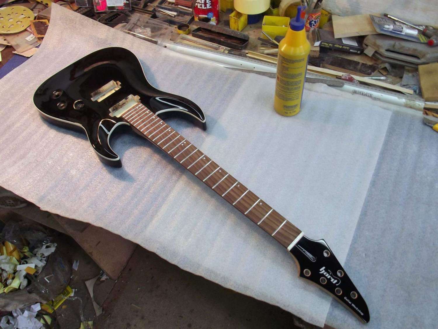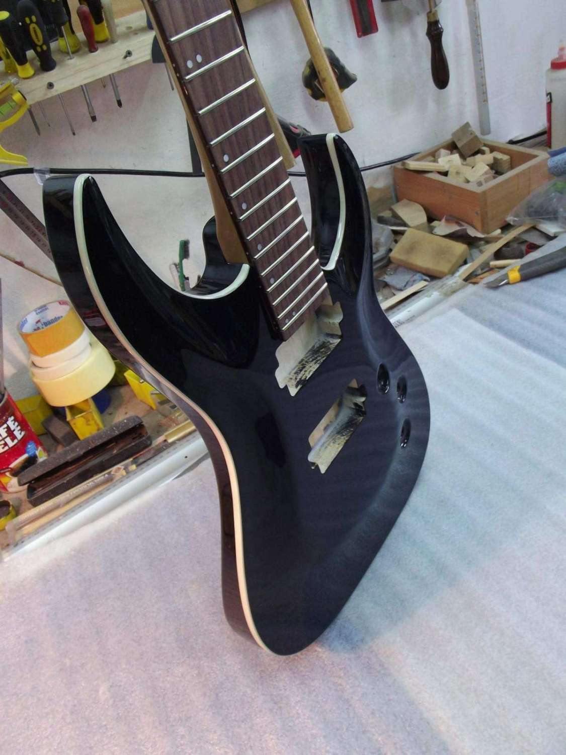 Решил я наконец добить практически забытую на полке бюджетную шестиструнку, последний раз при финишной лакировке накосячил с лаком, пришлось всё убирать и красить заново