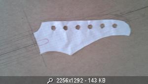 Насчитал на ней семь струн, в то время как на чертеже был указан карман под стандартный шестиструнный гриф. Видать те ребята, которые заклепали шаблон, попросту масштабировали его под шестиструнку, отталкиваясь только от размеров кармана! Соответственно и дека уменьшилась вместе с ним.
