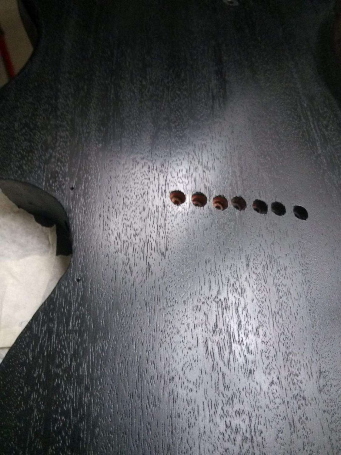 Да и нитрой можно получить матовую поверхность.просто много слоев положить,а потом шлифануть верхние без полировки.Просто затонировать дерево перед этим.в лак наверное добавлять красители не стоит.Найти морилку под черное дерево на водной основе анилиновую.Покрывать много раз,с сушкой каждого слоя пару часов.Перед покрытием слегка смочить древесину чтобы ворс поднялся.потом шлифануть и покрыть сразу морилкой.много лоев чтобы пропитать как следует и жидкой нитрой залить,кисточкой мягкой равномерно размазать.Первый слой нитры как грунтовка.дальше хоть 20 слоев.Далее шлифовка до ровной поверхности не боясь добраться до дерева.так как это трудно будет сделать при таком колличестве слоев.