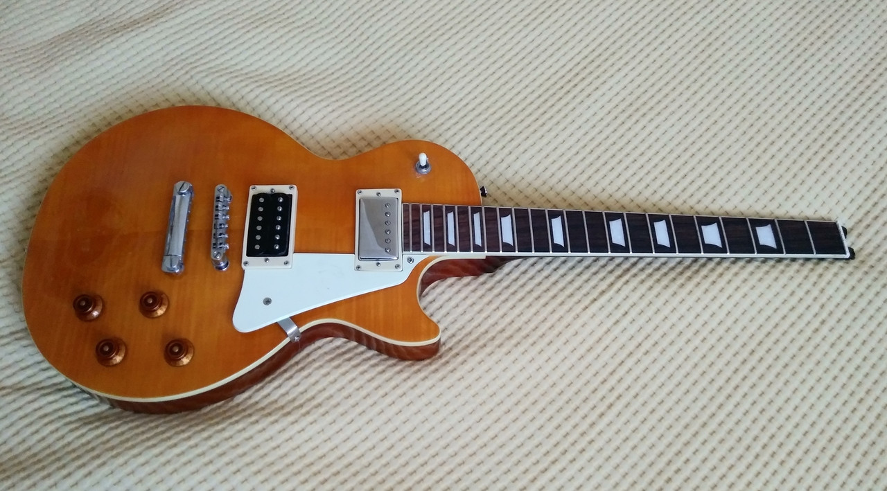 Хочу отремонтировать Epiphone Les Paul Standard с отломанной головой. Отпилить гриф под углом и приклеить новую голову. Однако, для этого надо сначала отклеить накладку. Я уже делал такую же работу на Epiphone Les Paul Studio. Для этого нагревал накладку инфракрасной лампой 500Вт. Разметку, чтобы не плавилась, закрывал монетками.