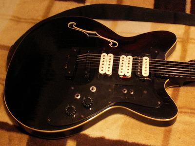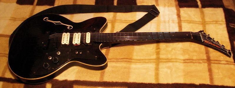 с уже переделанными звукоснимателями, нахимиченной проводкой и т.д.