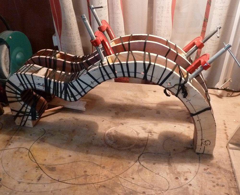 Добротный инструмент, надеемся не последний! Маленькое пожелание мастеру: голова грифа на гитаре смотрится немного бедновато на фоне роскошной окантовки самого грифа. Просится небольшая инкрустация. Лого, знак зодиака, мало ли что ещё. Значительно богаче будет выглядеть. Ну, это на будущее, а за эту гитарку твёрдая пятёрка по пятибальной шкале!