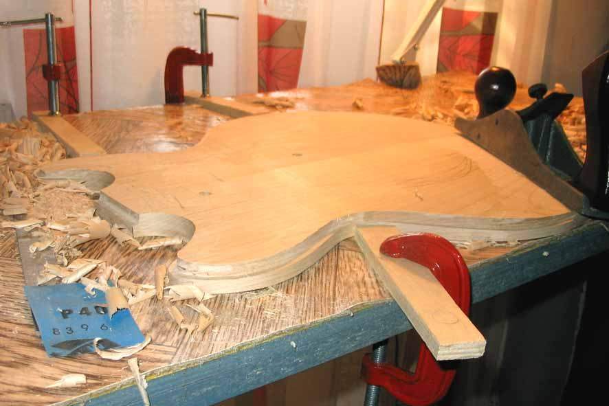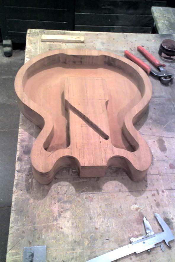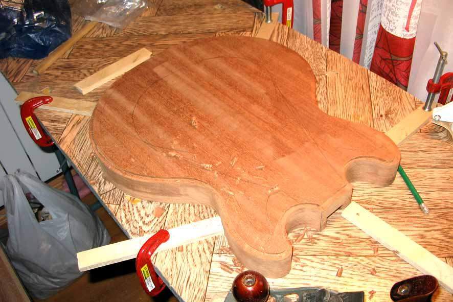 А я продолжу. Как видно из чертежа, корпус гитары имеет небольшой купол. И подглядев в каком-то видео от мастера со Стюмака, начал делать вот такую штуку, забыл как она правильно называется