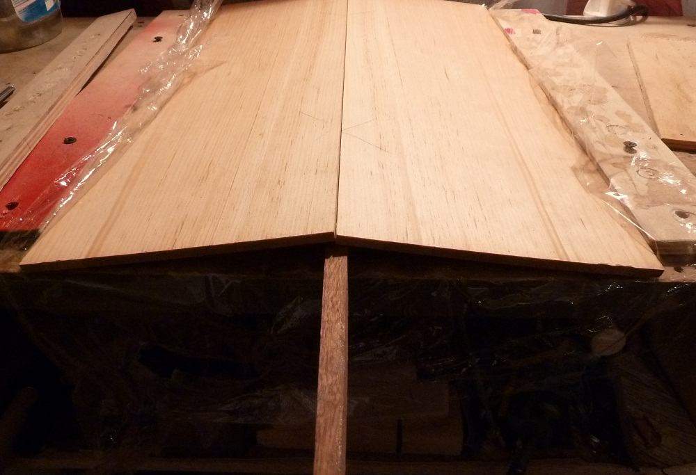 И параллельно клею верхнюю кедровую деку. Какой приятный у кедра запах!
