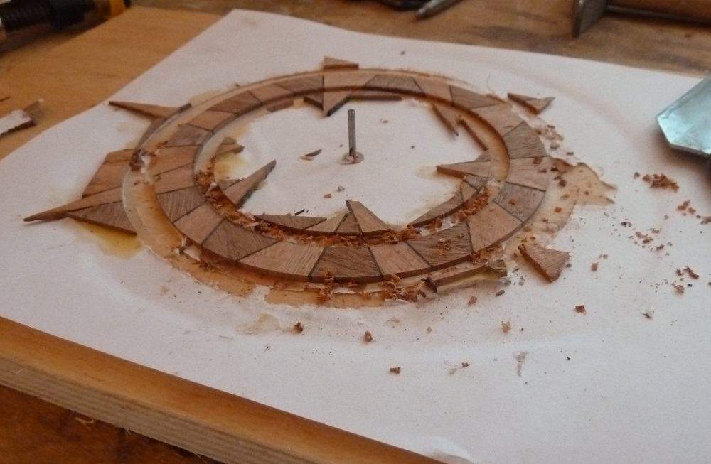 Гриф вклееный сапели с накладкой венге, инкрустирован маркерами в виде крестиков из натур. перламутра, на голове звезда из перламутра.