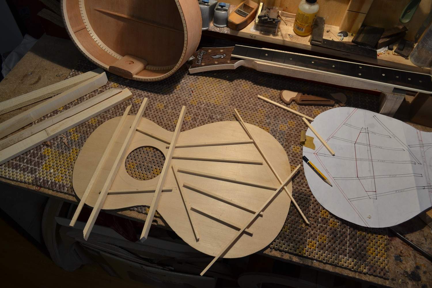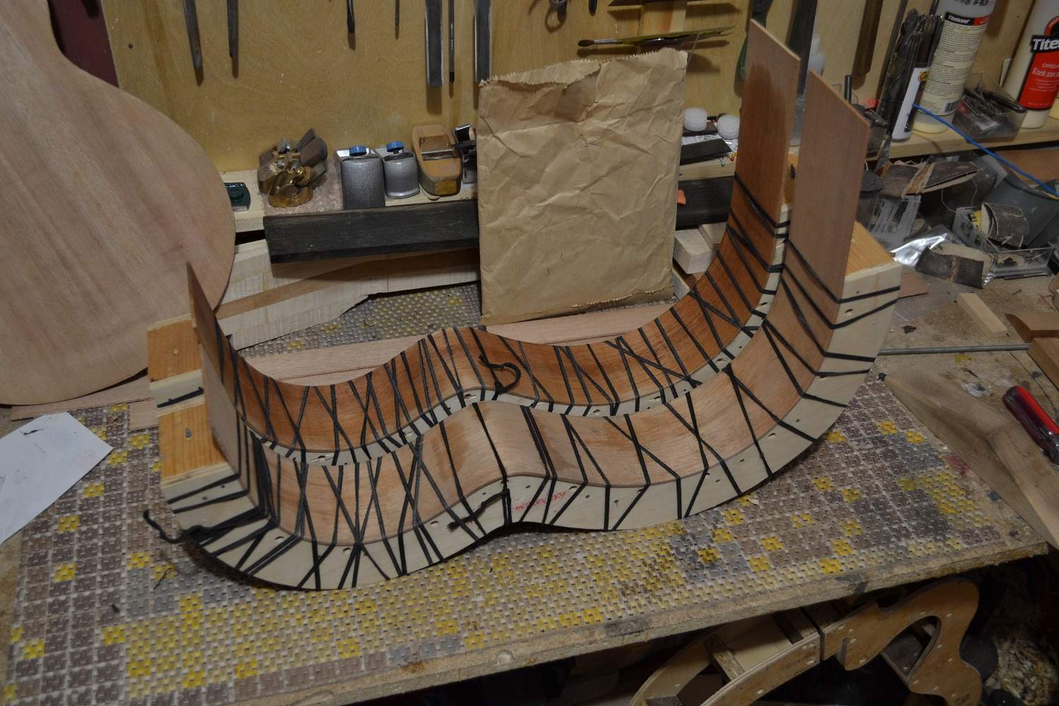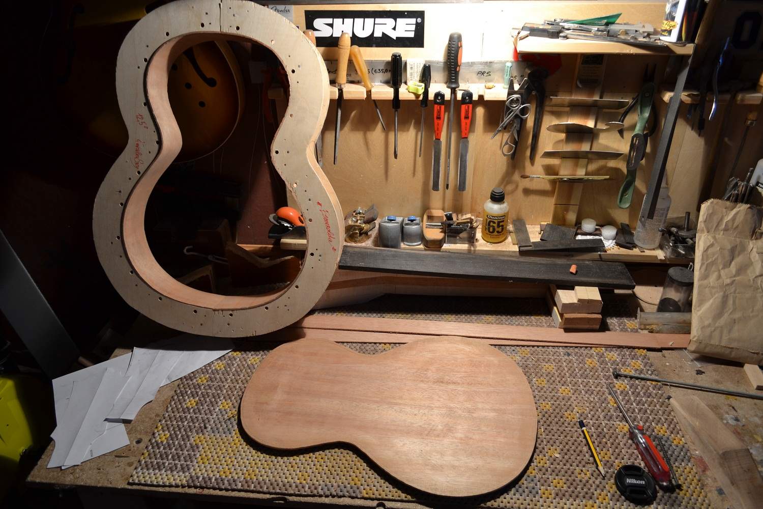 Сейчас на очереди JM 600, в этой гитаре будет еще больше воздуха, гитара с одним рогом и укороченным центральным бруском, что позволит освободить заднюю часть дек. В связи с этим струнодержатель будет навесным, а бридж в свою очередь статичным.